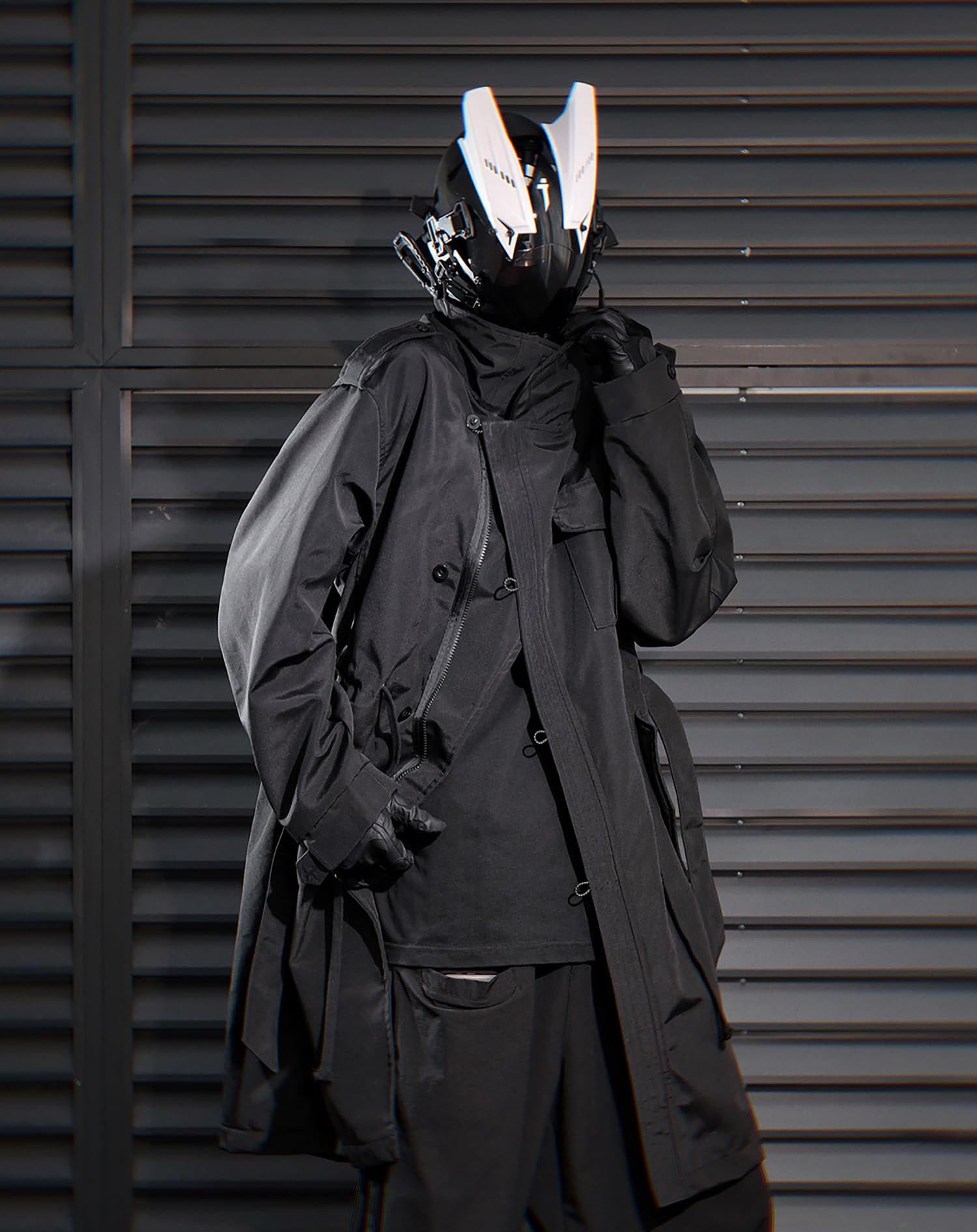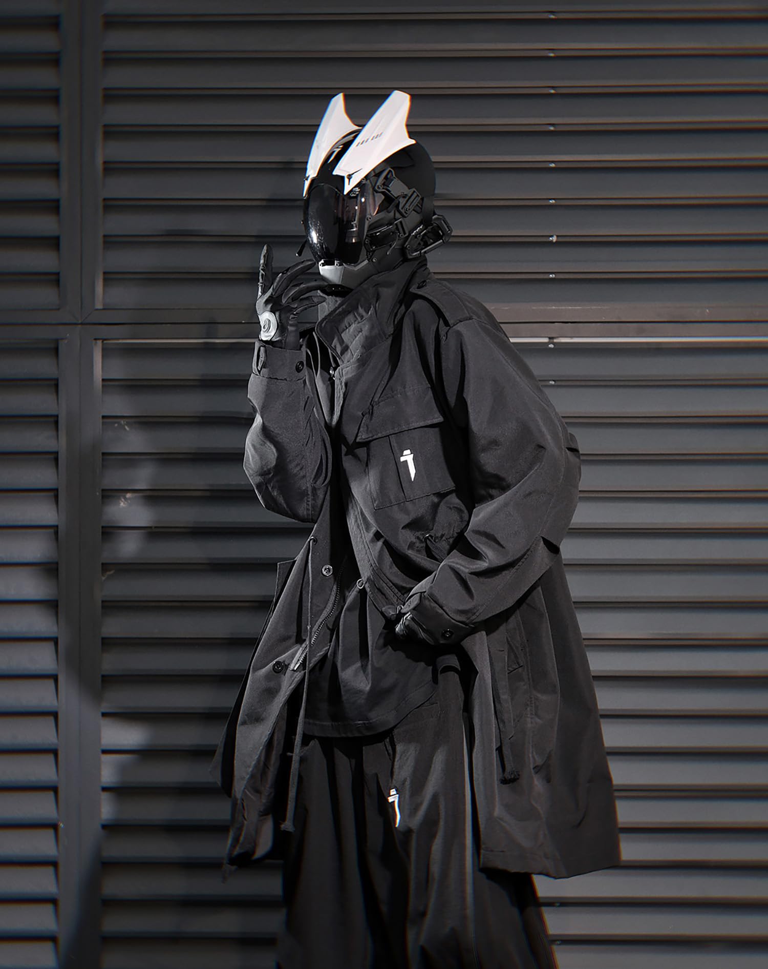 This techwear jacket features an embroidered i-tech logo on the chest, showcasing futuristic identity and visual appeal.