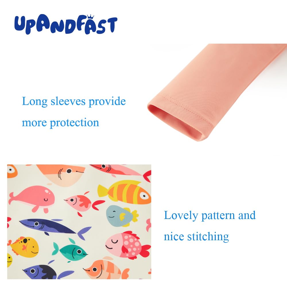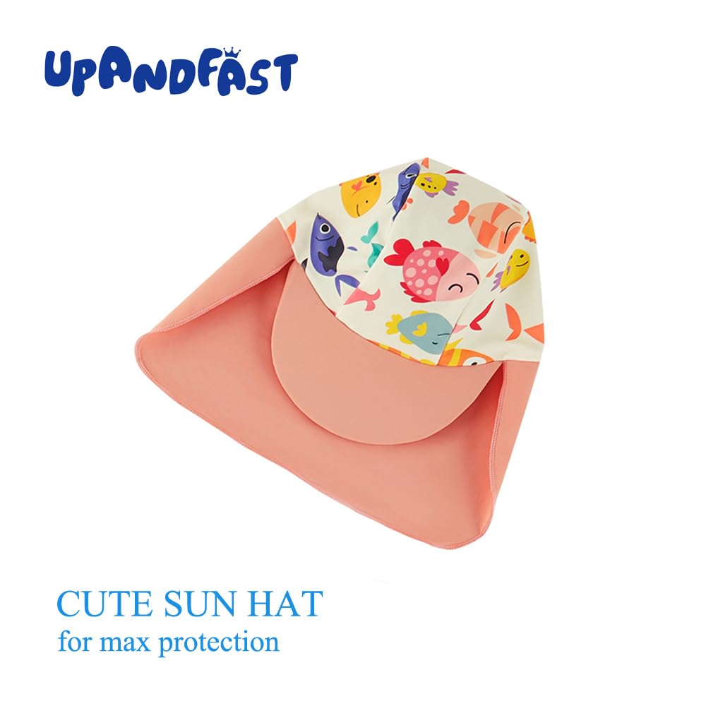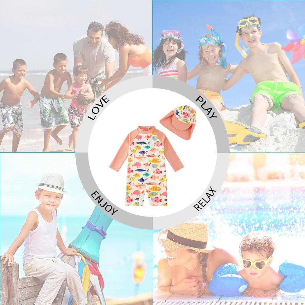 CUTE SUN HAT: Toddler rash guard that comes with a lovely hat, it covers baby's delicate face and neck. which can give baby more protection when playing at the sea, beach or under the sun