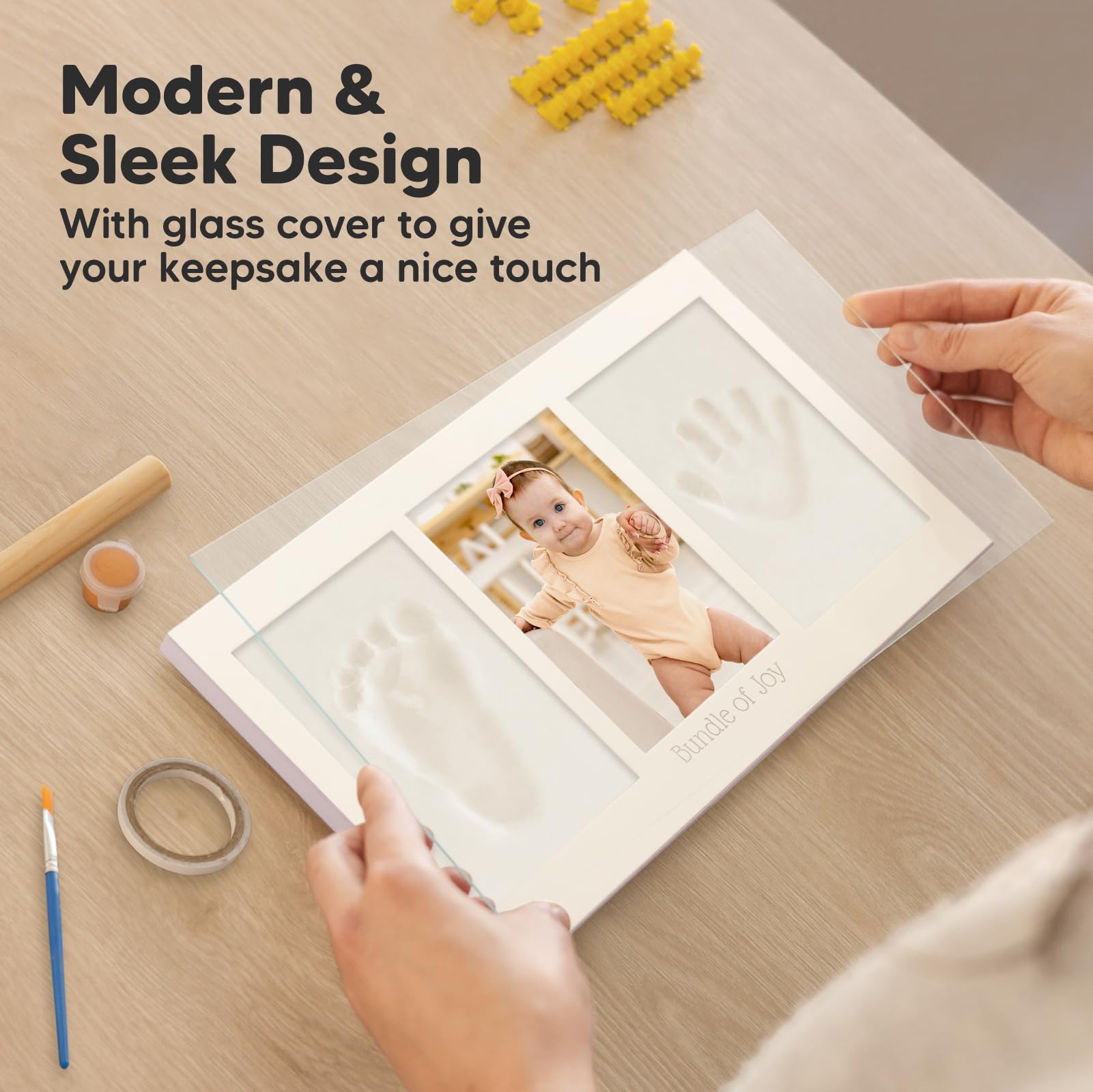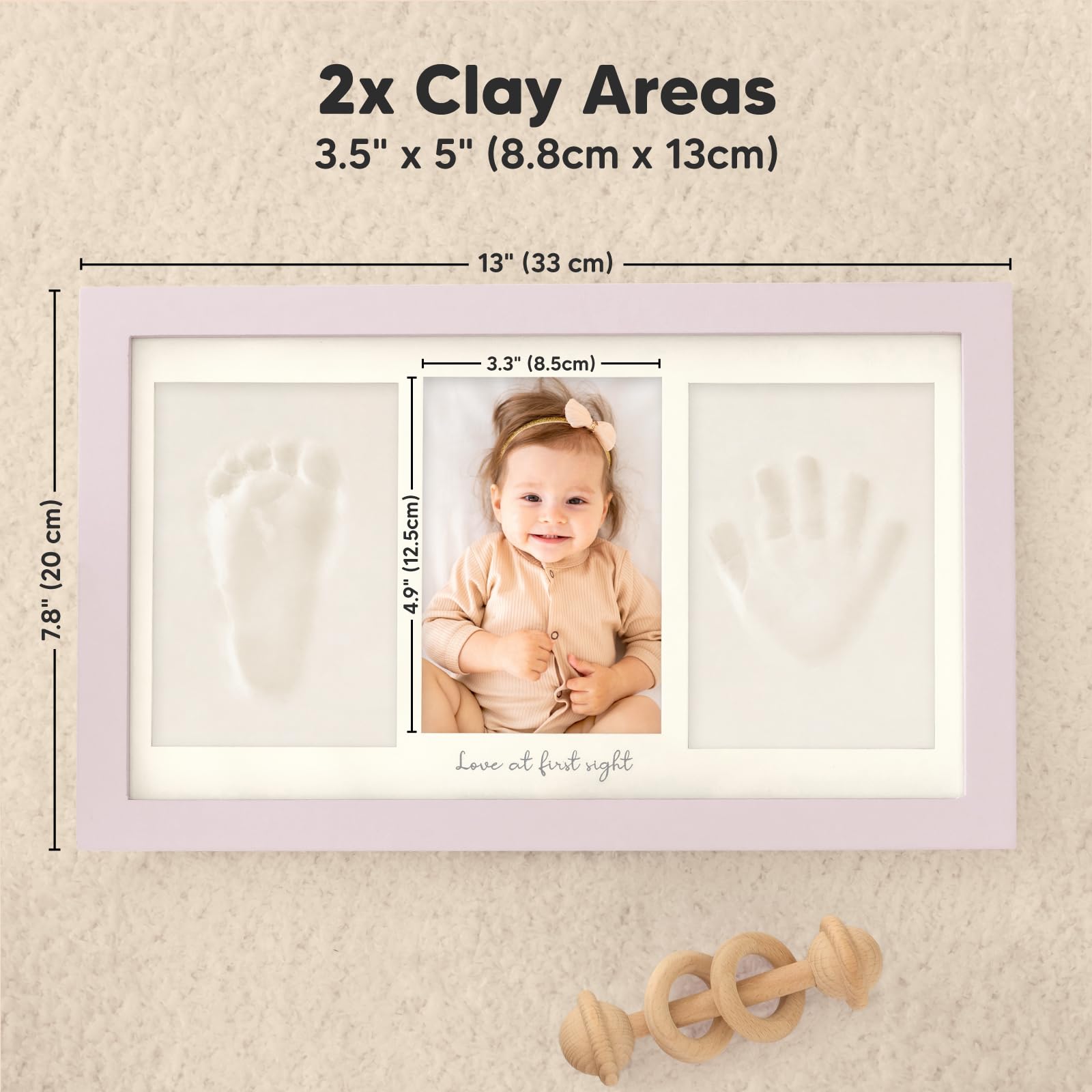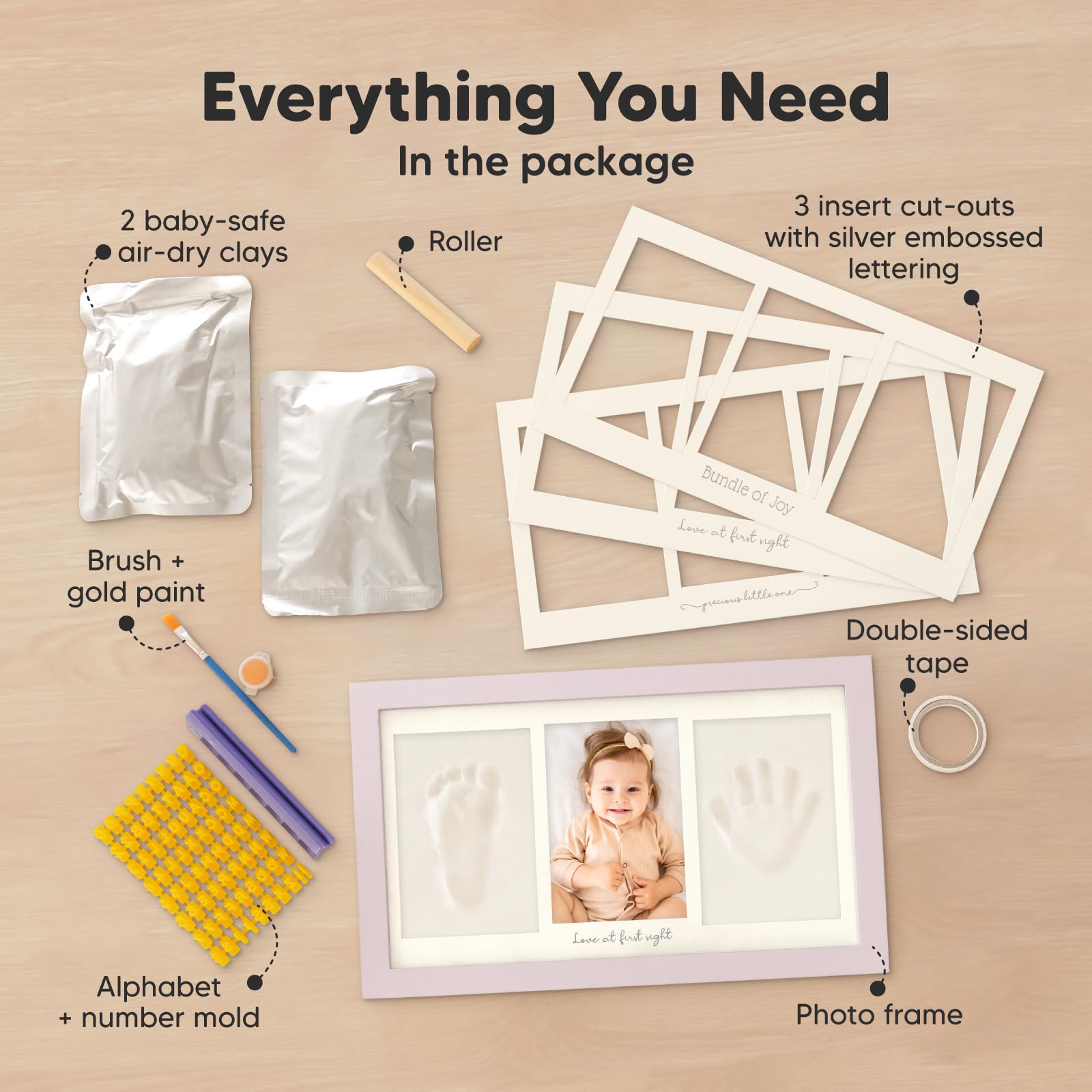 100% Safe Food-Grade Clay - Our baby picture frame features 100% baby-safe air-dry clay, perfect for preserving your baby prints. Our premium material ensures durability, the baby hand and footprint maker will look flawless for years to come.