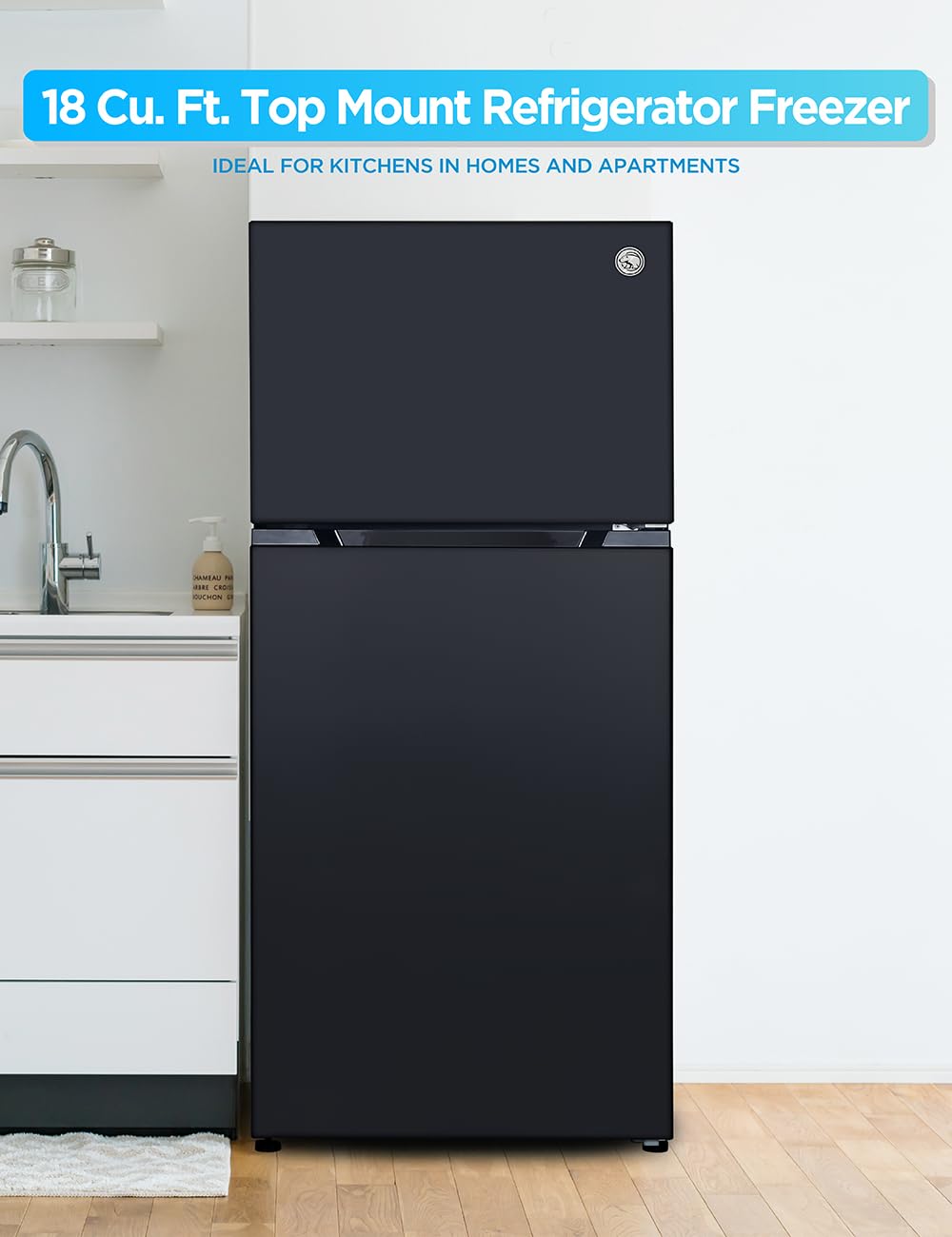 Generous 18 Cu. Ft. Capacity: Our full size refrigerator with freezer offers organized storage for fresh and frozen foods. Top freezer refrigerator fits perfectly in kitchens in homes and apartments