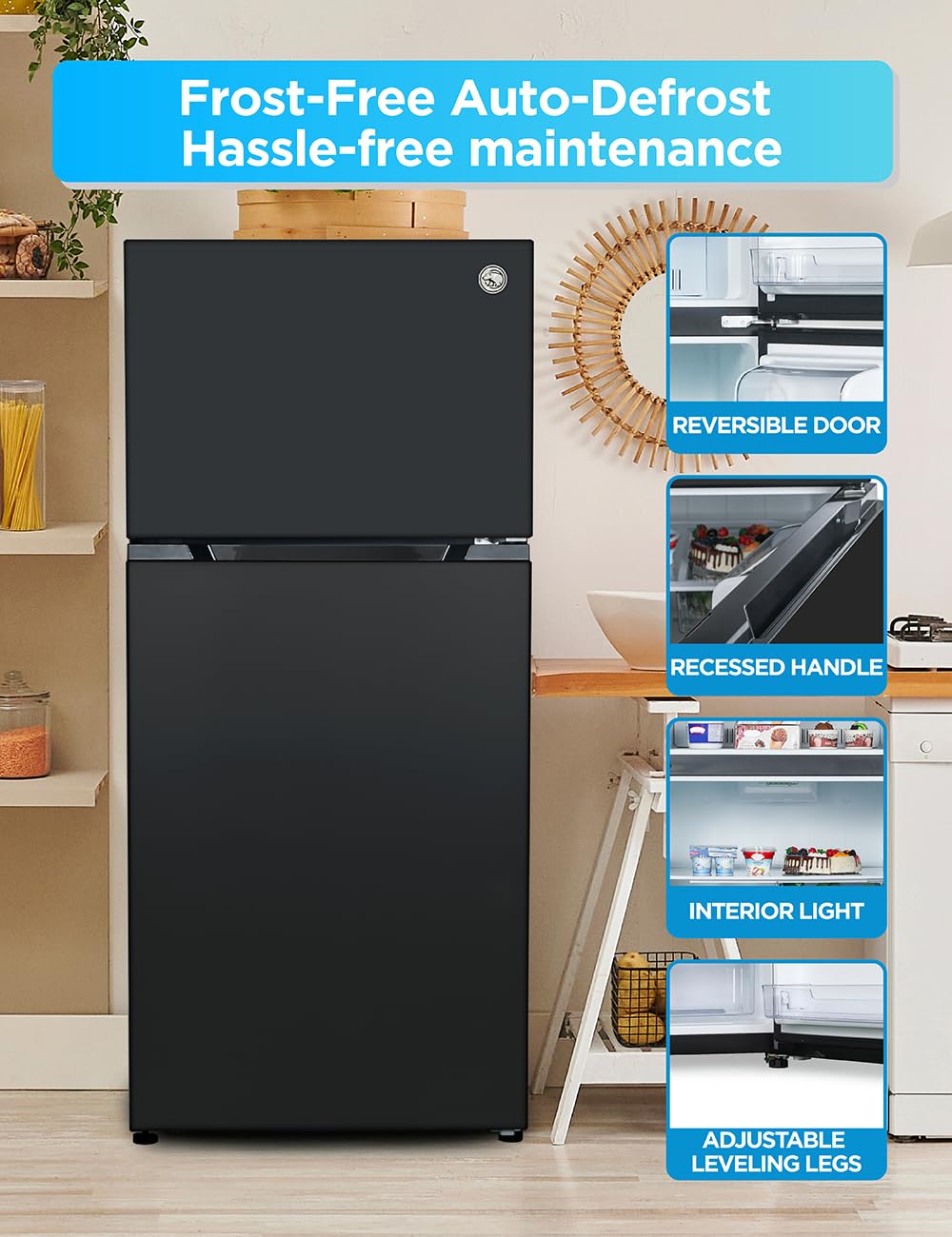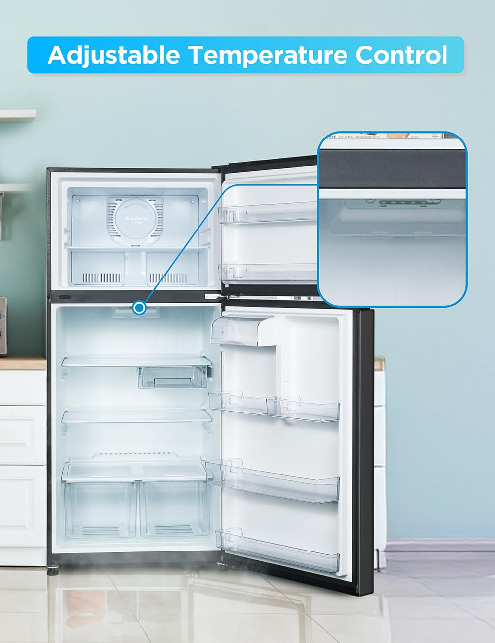 Independent Temperature Control: Maintain optimal freshness with the adjustable temperature control feature. Set the perfect climate levels for both the refrigerator and top freezer sections