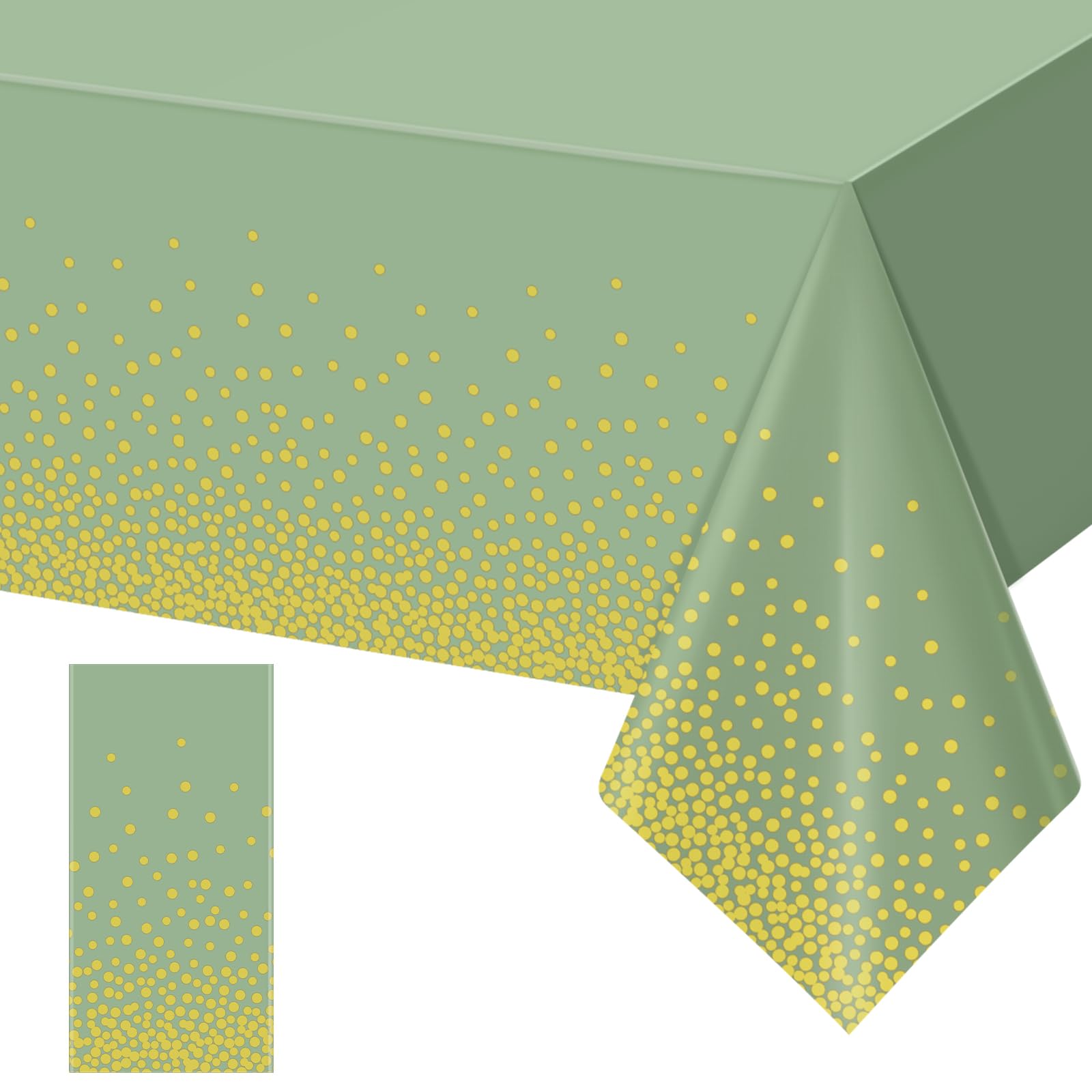 Package Includes: You will receive 1 sage green and gold dot tablecloths, each sage green tablecloth measures approx 54 x 108 inches, fit any rectangle table up to 8 feet in length, suitable for party decoration.