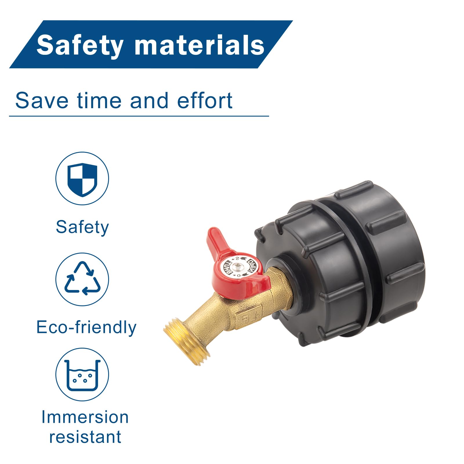 Leakproof Design: The tote tank adapter is equipped with a gasket and sealing tape, effectively preventing leaks and ensuring a secure connection. The IBC Tote Adapter Switch, made of high-quality metal, provides convenient control over water output.