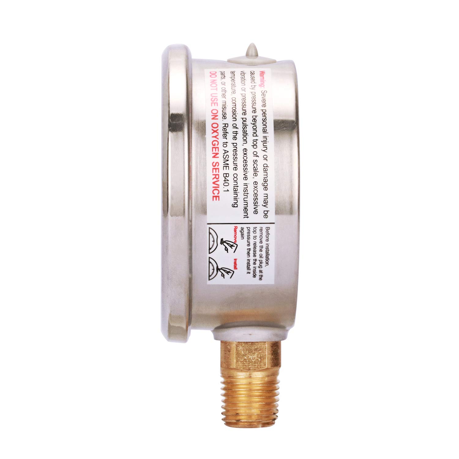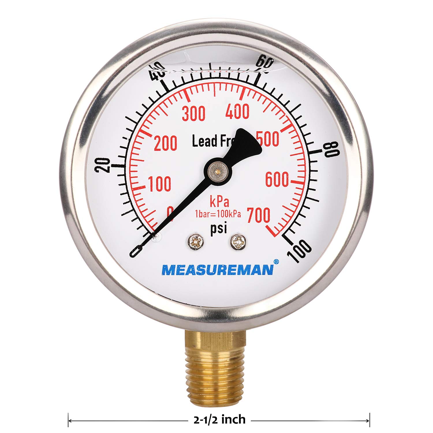 Pressure range: 0-100psi/kpa double scale, big letters, easy to read