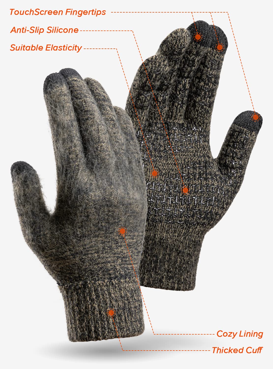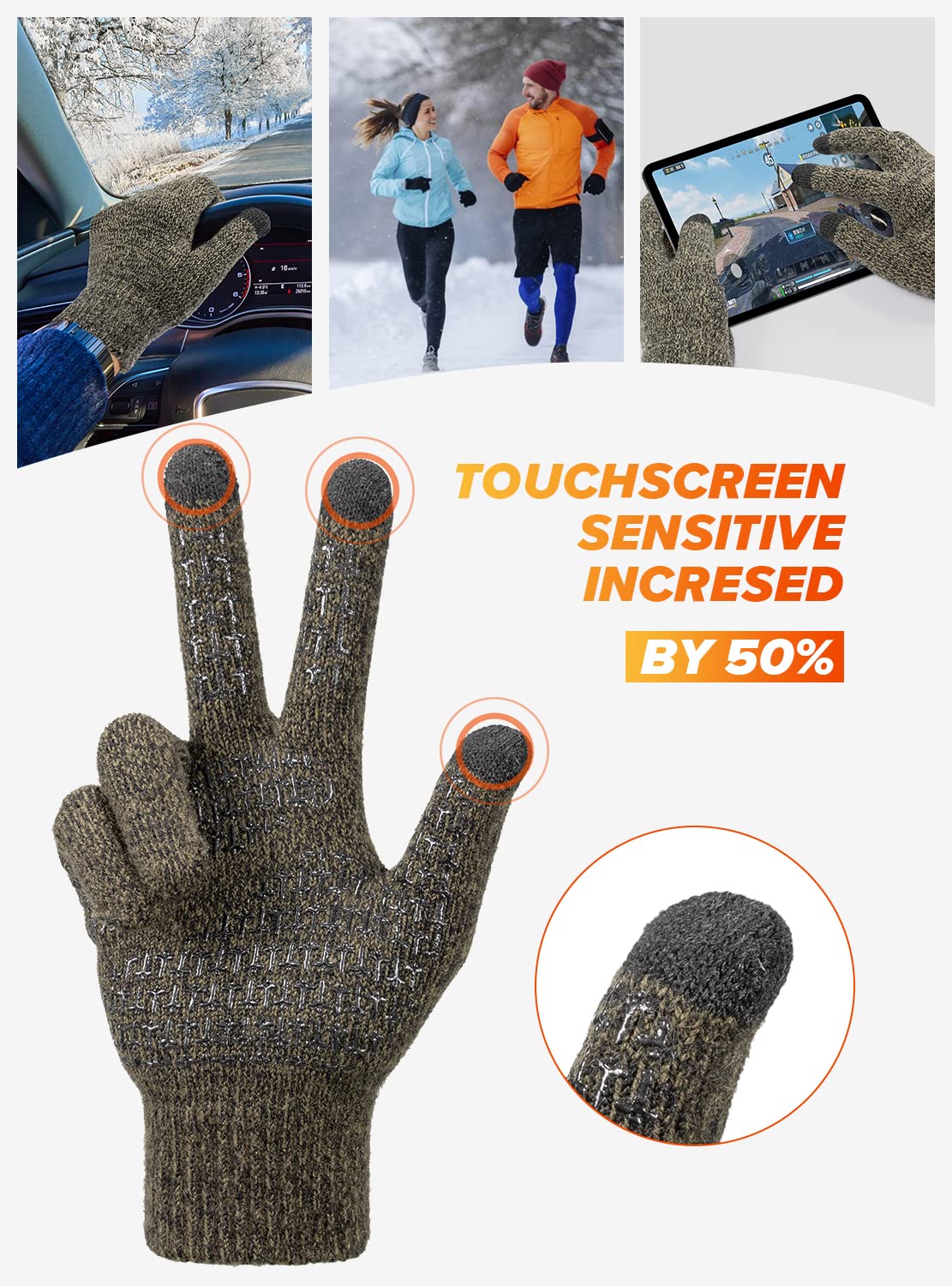 Sensitive touchscreen & anti-slip palm: Sensitivity Touchscreen gloves increased by 54% more than the previous winter gloves version, with more durability and sensitivity. Winter gloves for men with touchscreen capability design on the thumb, forefinger, middle finger and being compatible with all touchscreen devices, say goodbye to ice fingers. The Non-slip grip pattern design of womens gloves helps to grasp things easily and hold the steering wheel, adaptable to the Men/Women habits