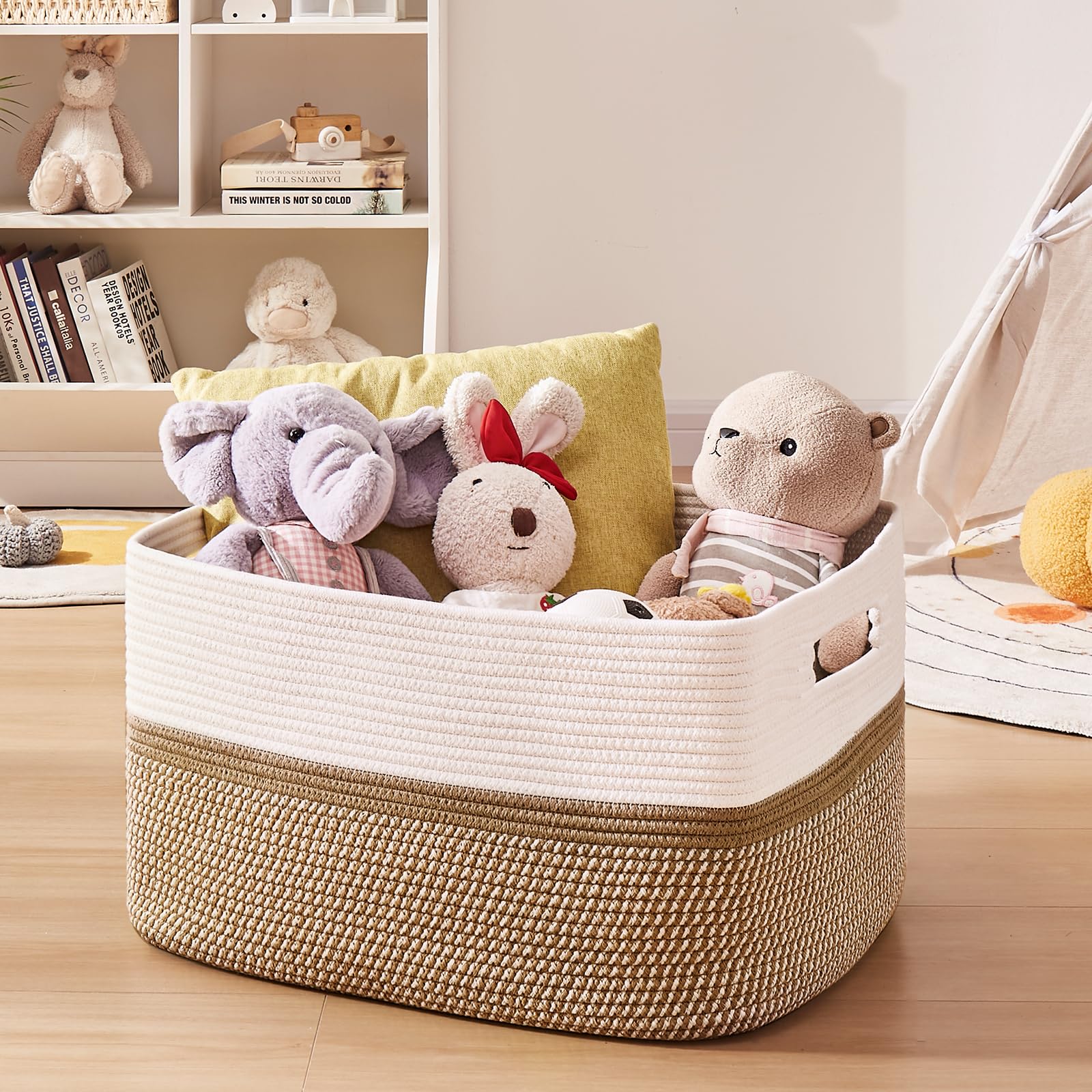 100% Cotton Rope Storage Basket:OIAHOMY laundry basket is made of 100% natural cotton, chemical and odor free, there are no sharp or hard edges to scratch floos, and safe for kids and pets. It is more firm than plastic basket
