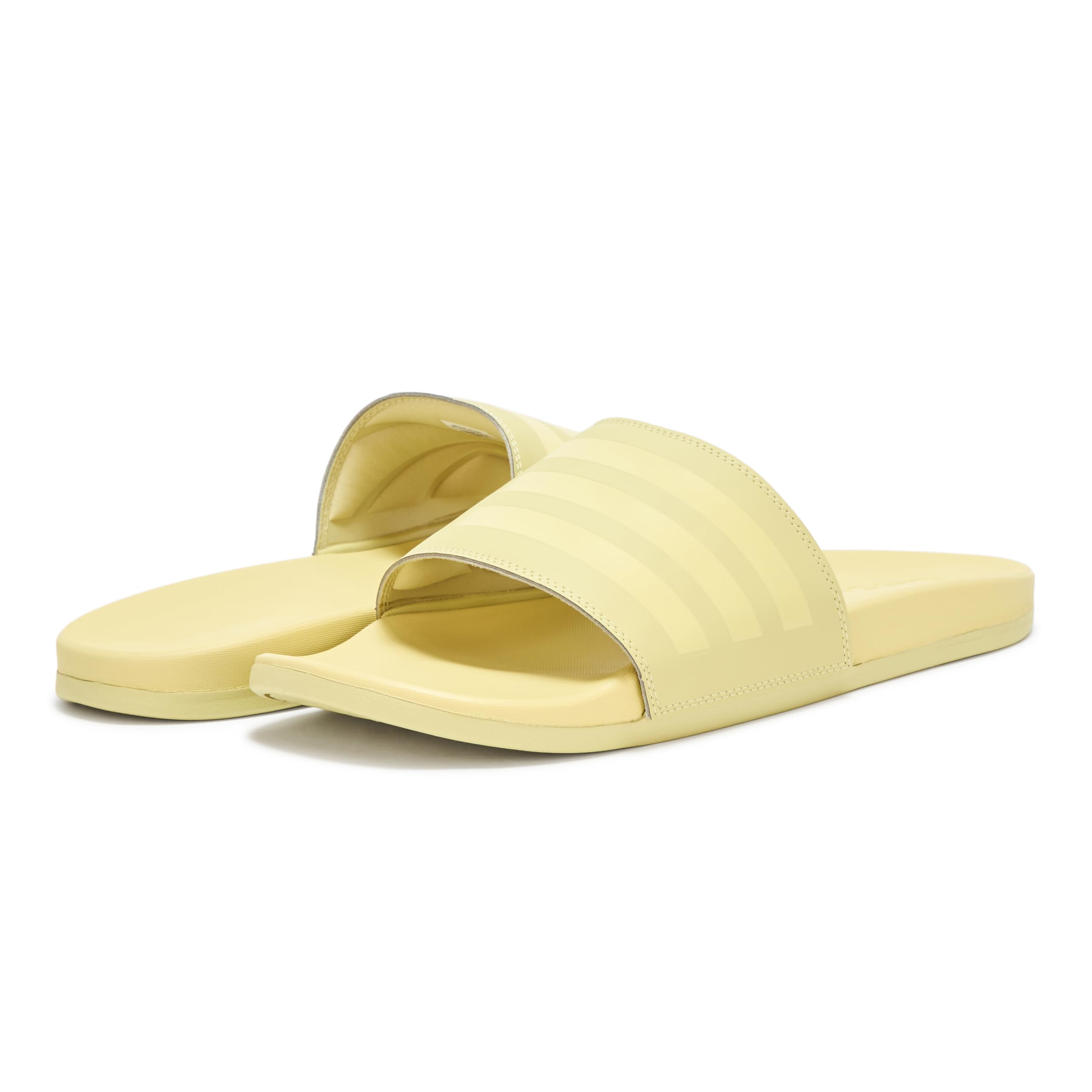 Description Get a little style with your poolside comfort thanks to these adidas Adilette Comfort Slides. They feature a lightweight EVA build and a contoured footbed for elevated cushioning. The single-bandage upper is finished with classic-look 3-Stripes.
