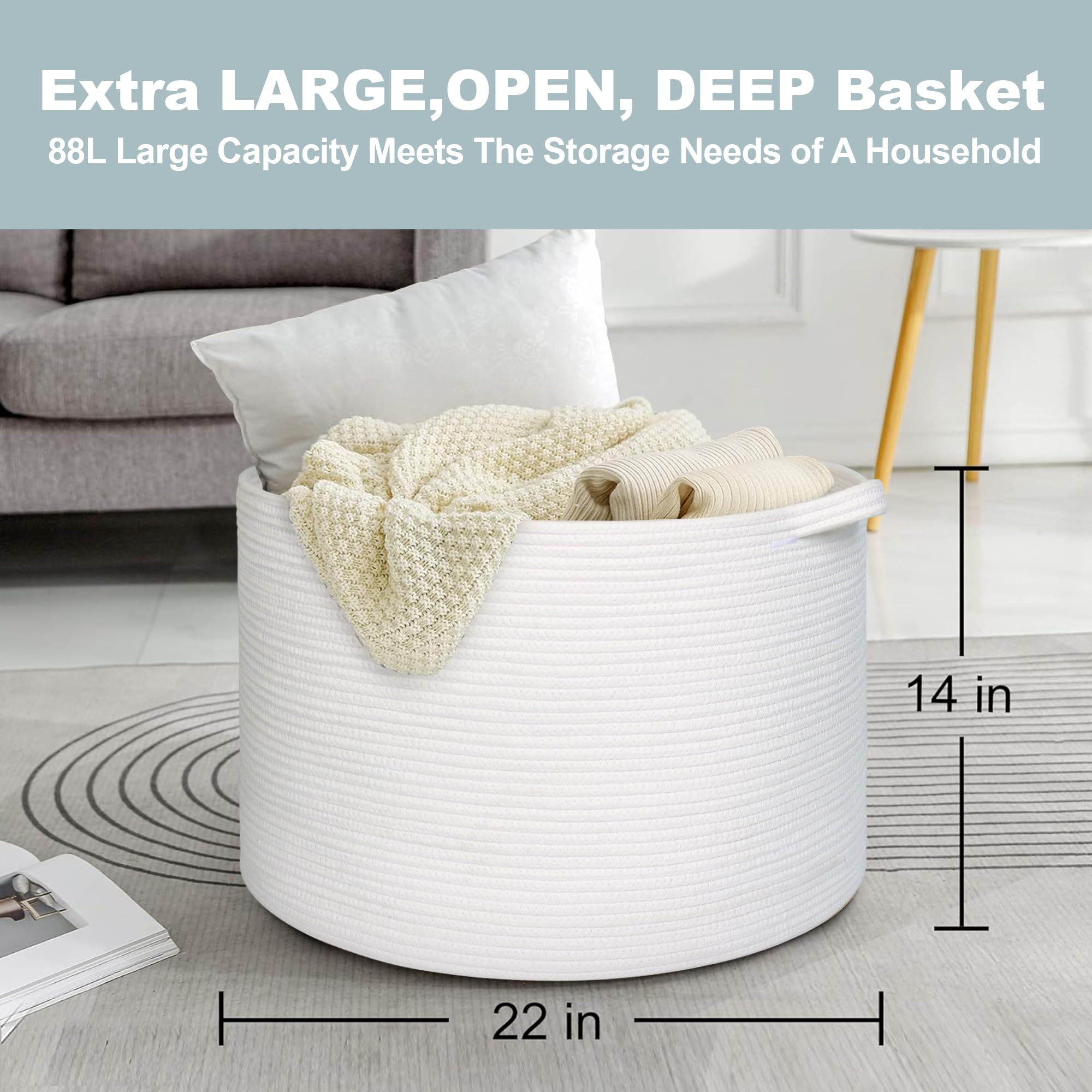 EXTRA LARGE CAPACITY BASKET: 22x14 inches XXXL baskets for blanket. Big and deep enough to hold a couple of pillows and throw blankets. A good blanket storage solution in the living room ensures your throws, quilts, and blankets are within easy reach. 88L toy organizers and storage are great for storing kid's toys like trucks, dolls, and Legos in the nursery.