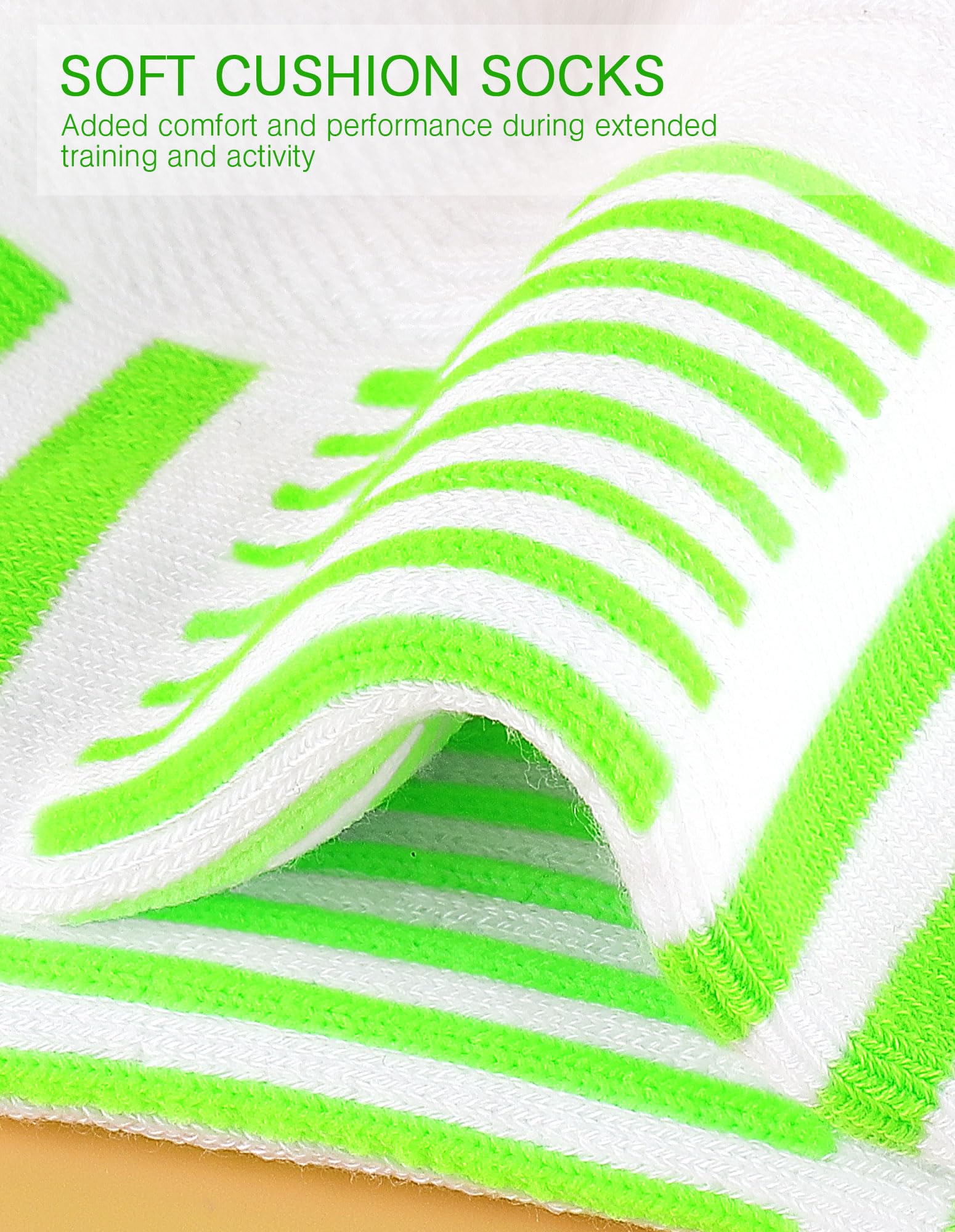 Description Airacker Athletic Socks Sport Running Socks Performance Cushioned Breathable Cushion Socks for Men Women(6 Pairs) Airacker is a brand that focuses on the production of high-performance sports socks. We aim to provide high-quality products and thinks highly of each customer, and we are also working hard to adhering to the concept. When we produce new products, we will try on personally to experience the effect, find out the shortcomings, and give feedback to the factory for improvement. Strictly control every detail to ensure the product quality and comfort are the best. Meanwhile, we're committed to providing better customer service, to ensure 100% customer satisfaction. You can contact us at any time for more information. Features: Comfortable elastic closure + Mesh top for breathability + Max sock cushioned + Great arch support + Reinforced toe + Striped style + ankle length Outstanding stitching technology, Seamless toe design reduce friction between socks and skin better. Constructed with soft plush sole cushioning for extra softness in high-wear areas, and reinforced comfort of the socks. SPECIFICATION: -Package: Includes 6 Pairs Socks. -SizeοΌSuit for US Women&Men's Shoe Size 6-9/Sock Size 9-11 , Shoe Size 9-12/Sock Size10-13 and Shoe Size 12-14/Sock Size 13-15. WASHING INSTRUCTION: -Machine wash cold and tumble dry low. -Suggest using wash bag and air dry. -Do not iron, bleach or put socks in hot water or suds for long time. Please refer to your shoes size before placing an order. Thanks for your purchase! Nice day:)