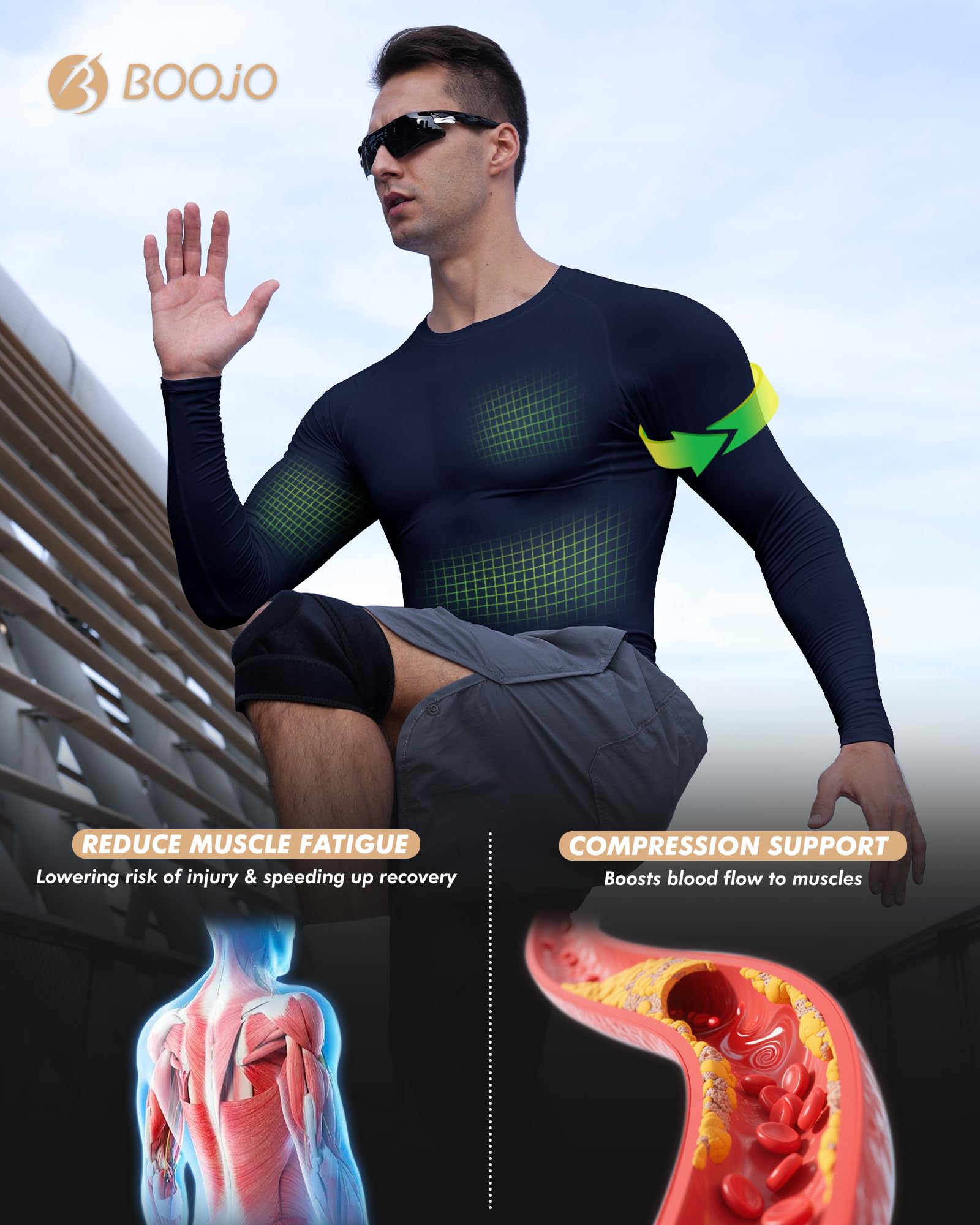 Ultimate all sports compression undershirt – your perfect companion for workout, athletic, gym, running, casual, work, fishing, surf shop& more! Pro-grade durability withstands crossfit, basketball, hiking and beyond. Experience the perfect balance of support and comfort for every workout! One longsleeve mens undershirts replaces your entire sport specific wardrobe