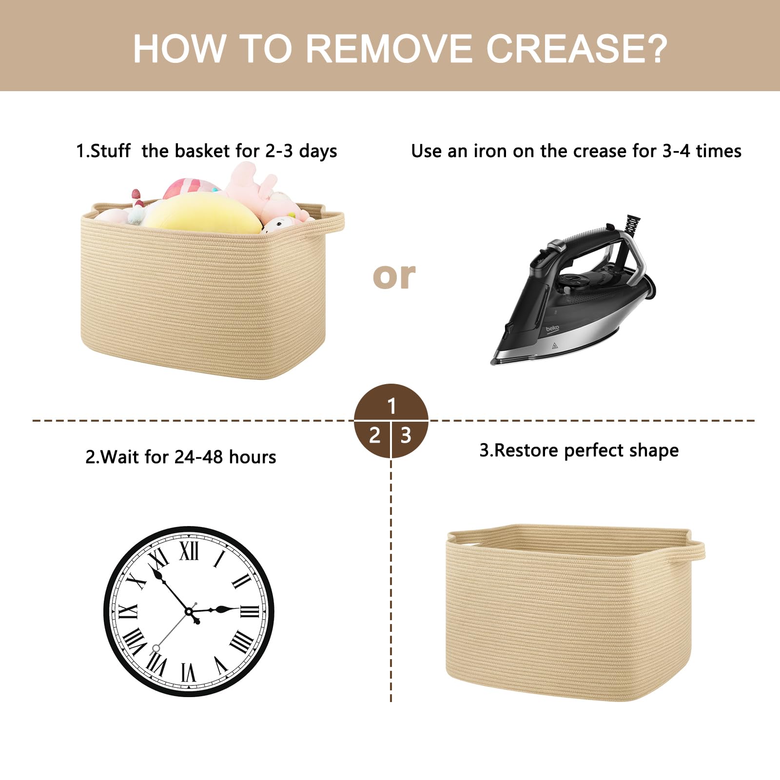 Important Note: The premium woven storage baskets are packed compact for shipping, you may find some crease on the item, you can fully stuff the pillow basket with towels or clothes to restore shape. Or fast smoothing the creases by steaming or Ironing