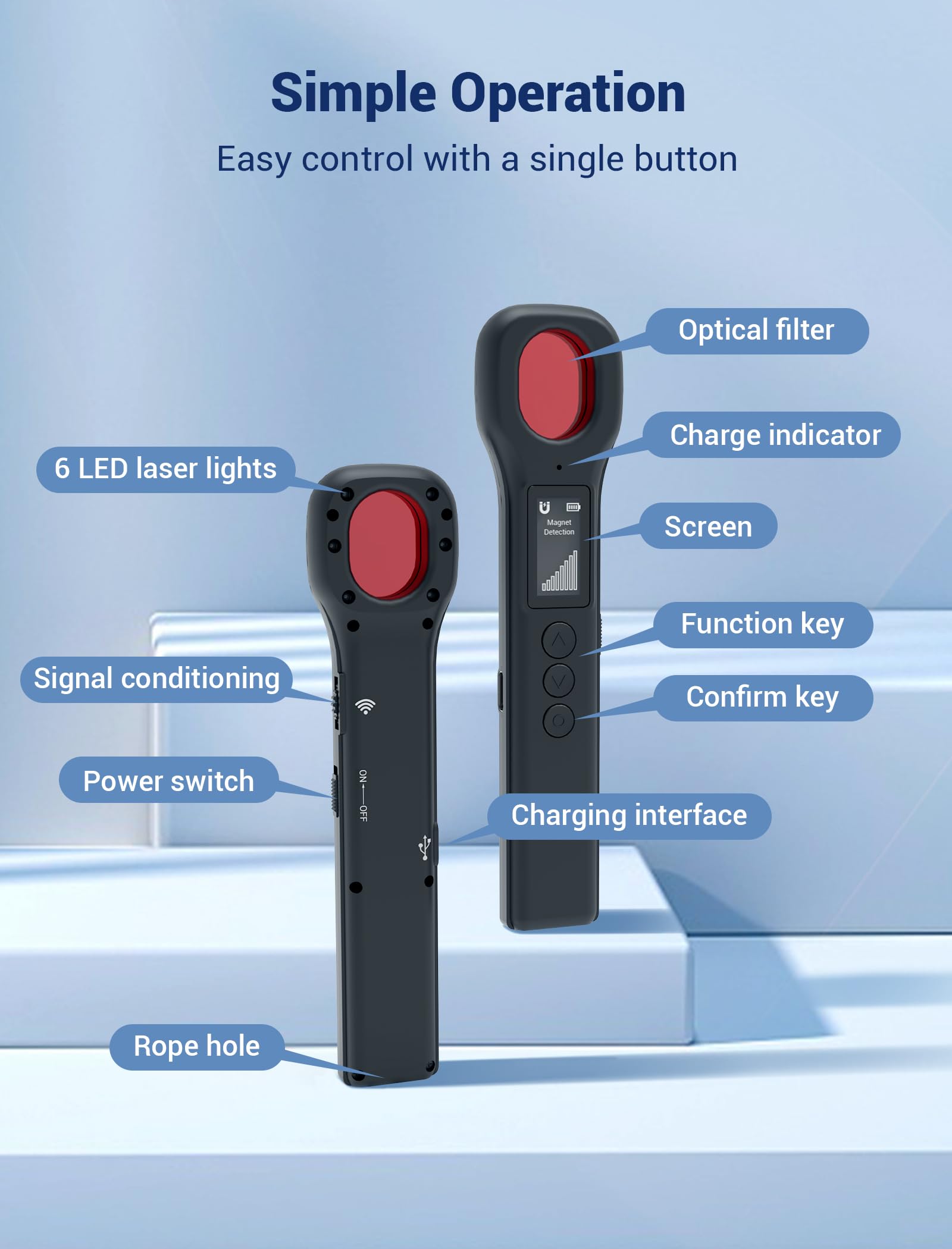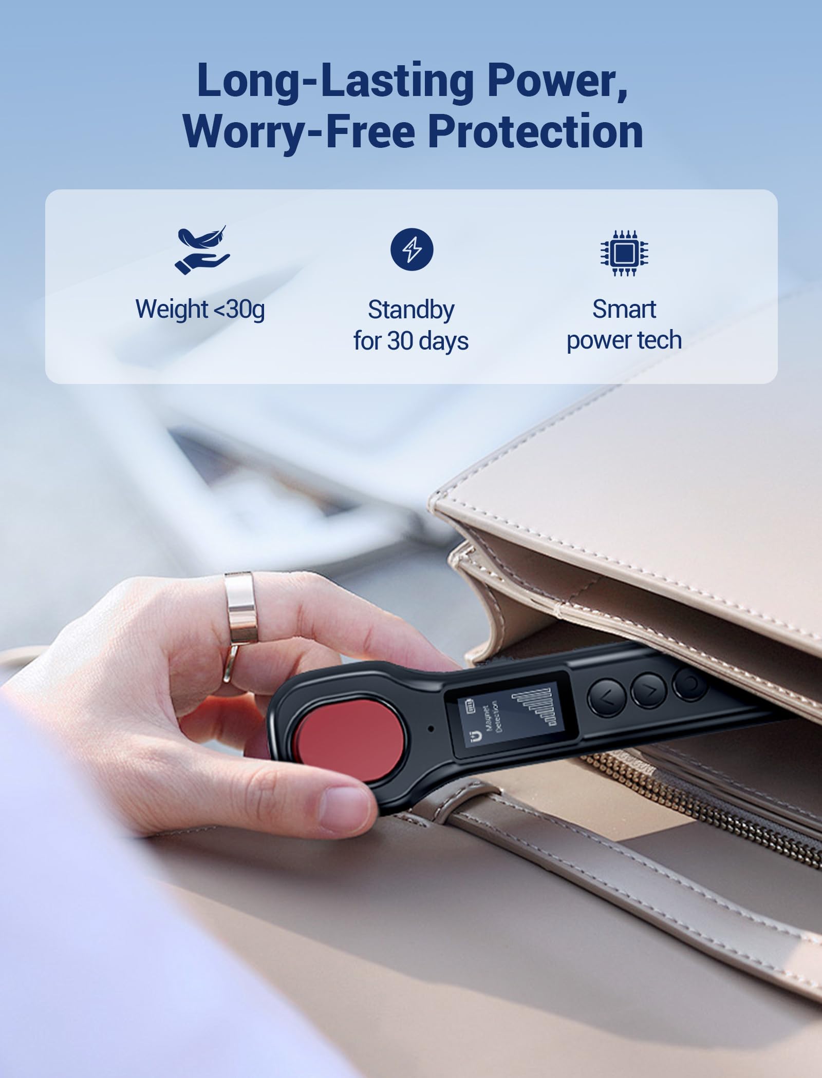 Portable and Built for Travel:Designed for everyday carry and extended use, the detector offers up to 30 days of standby and 10 hours of continuous scanning. Its compact, rechargeable, and lightweight build slips easily into bags, pockets, or purses—making it perfect for travel, work, and public areas.(Black)