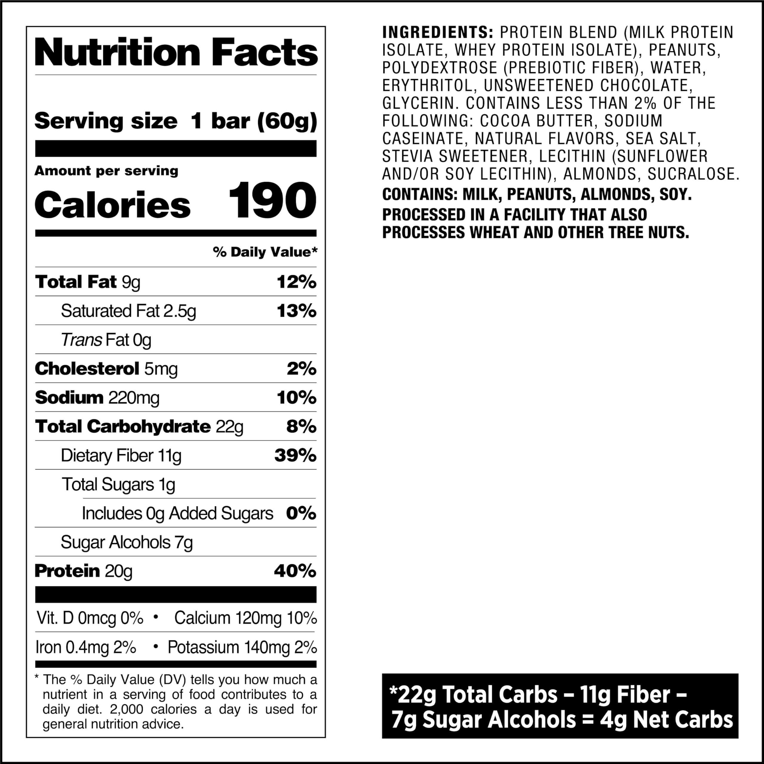 FIBER IS YOUR FRIEND: The Quest Chocolate Peanut Butter Protein Bars have 11g of fiber to provide your body with a more complete macro profile
