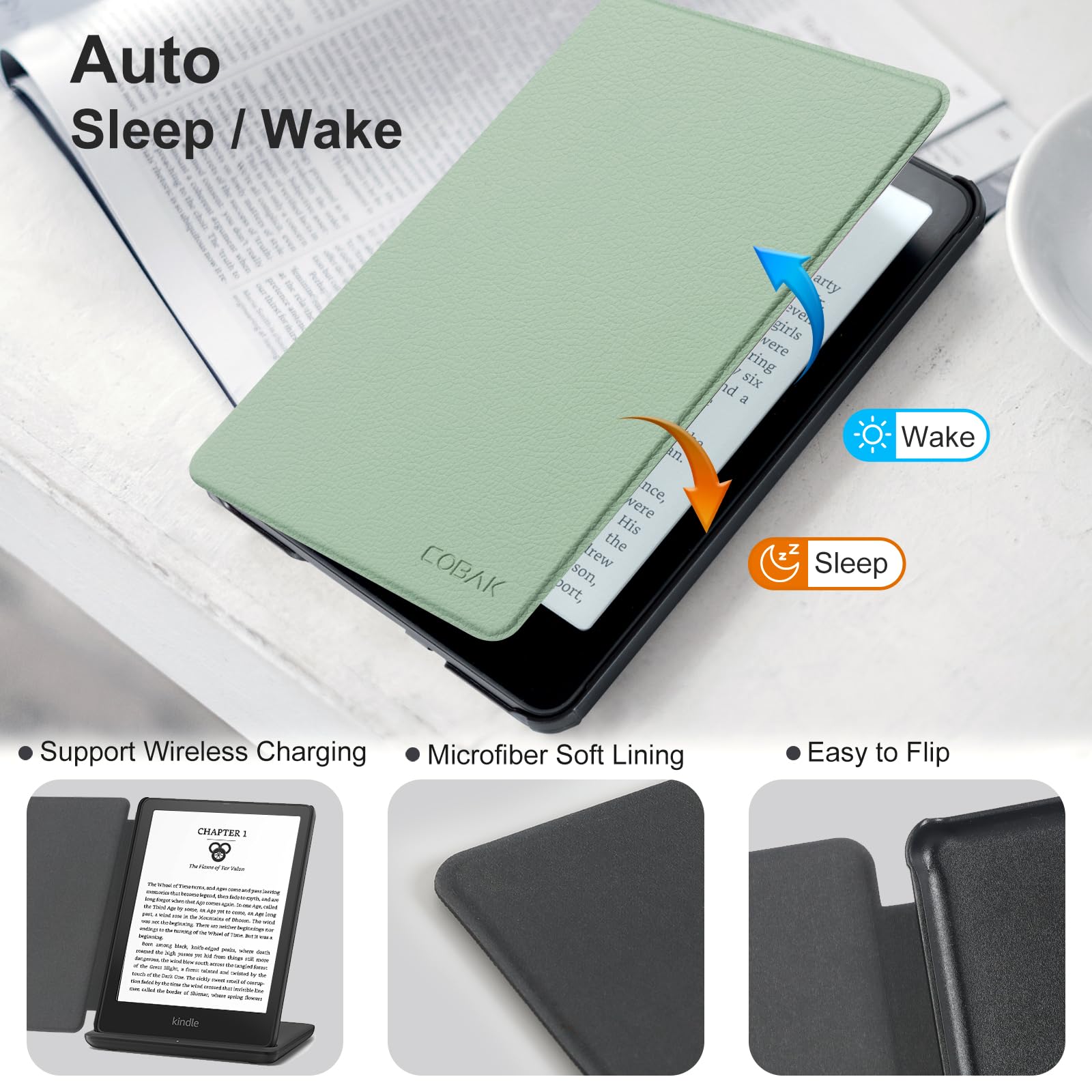 Auto Wake/Sleep Function Automatically wakes your Kindle when you open the cover and puts it to sleep when closed—saving battery life and adding convenience.