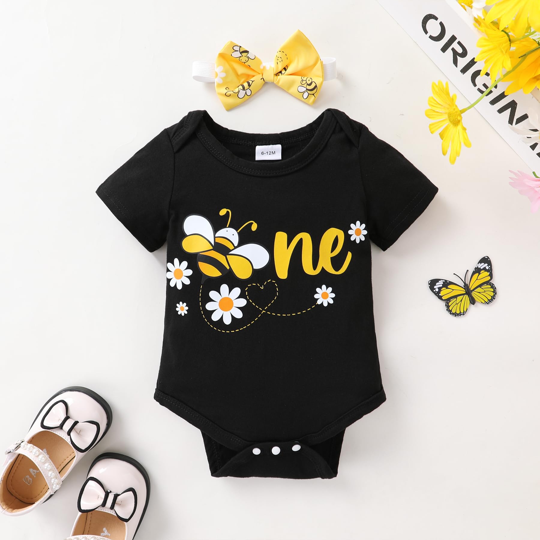 🐝Cute baby girl one 1st birthday outfit set, bee/sunflowe/cow clothes. Great birthday gifts for baby.