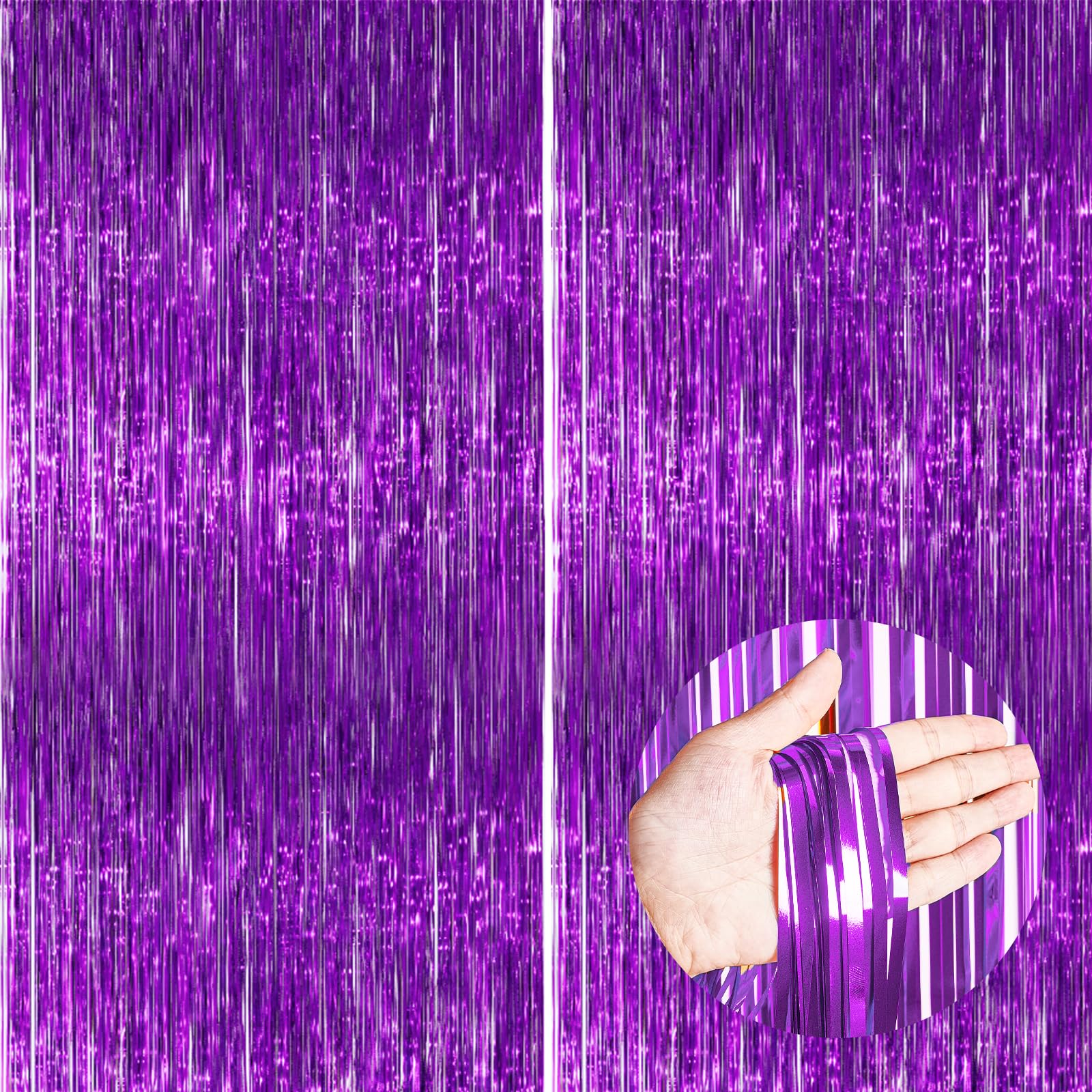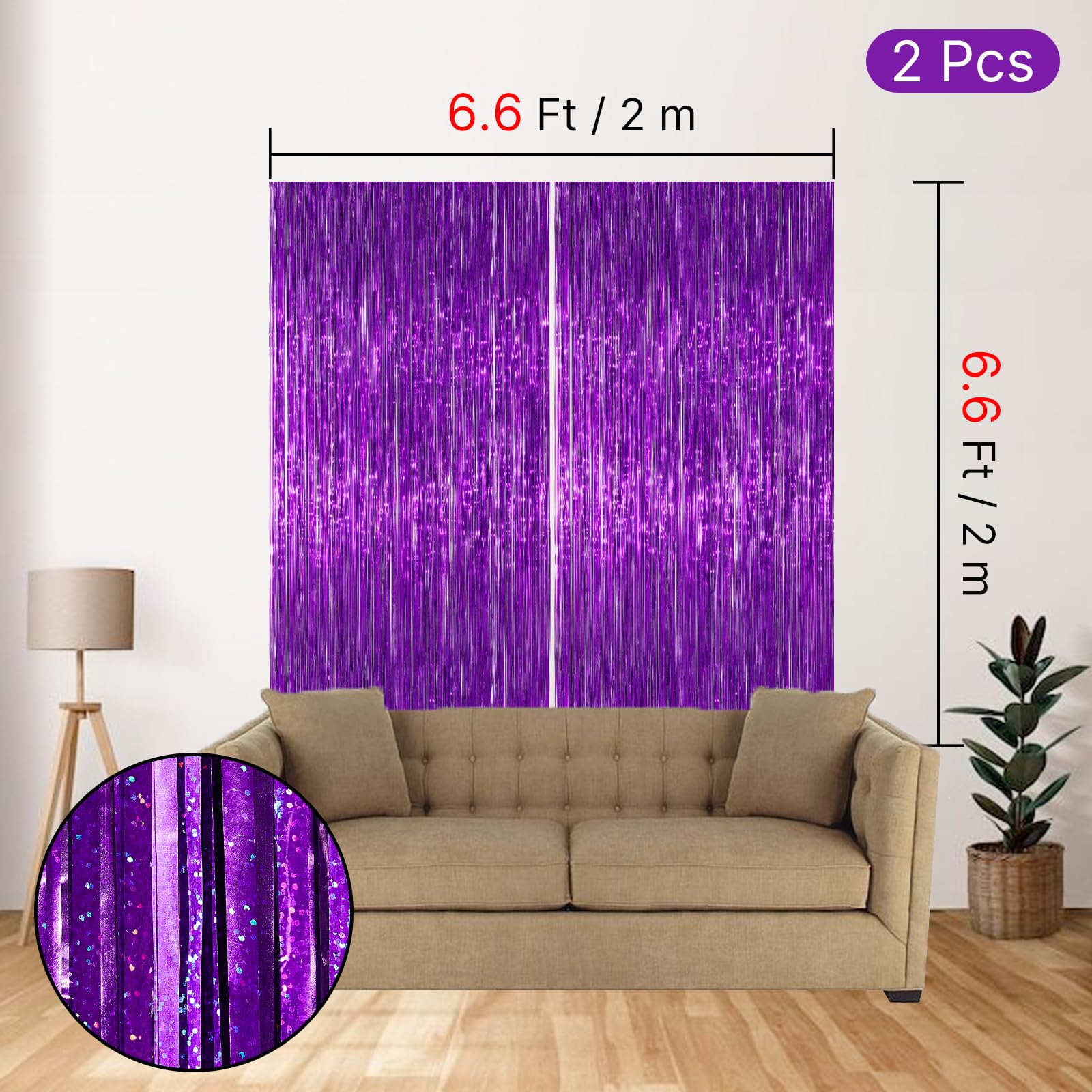 Including: 2 pcs purple foil fringe curtains, 6.6 feet length x3.3 feet width