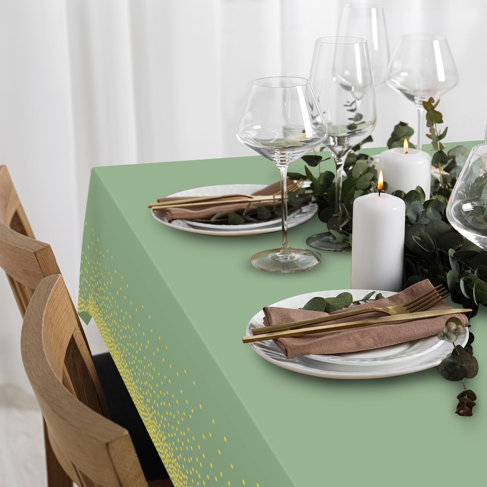 Package Includes: You will receive 3 sage green and gold dot tablecloths, each sage green tablecloth measures approx 54 x 108 inches, fit any rectangle table up to 8 feet in length, suitable for party decoration.