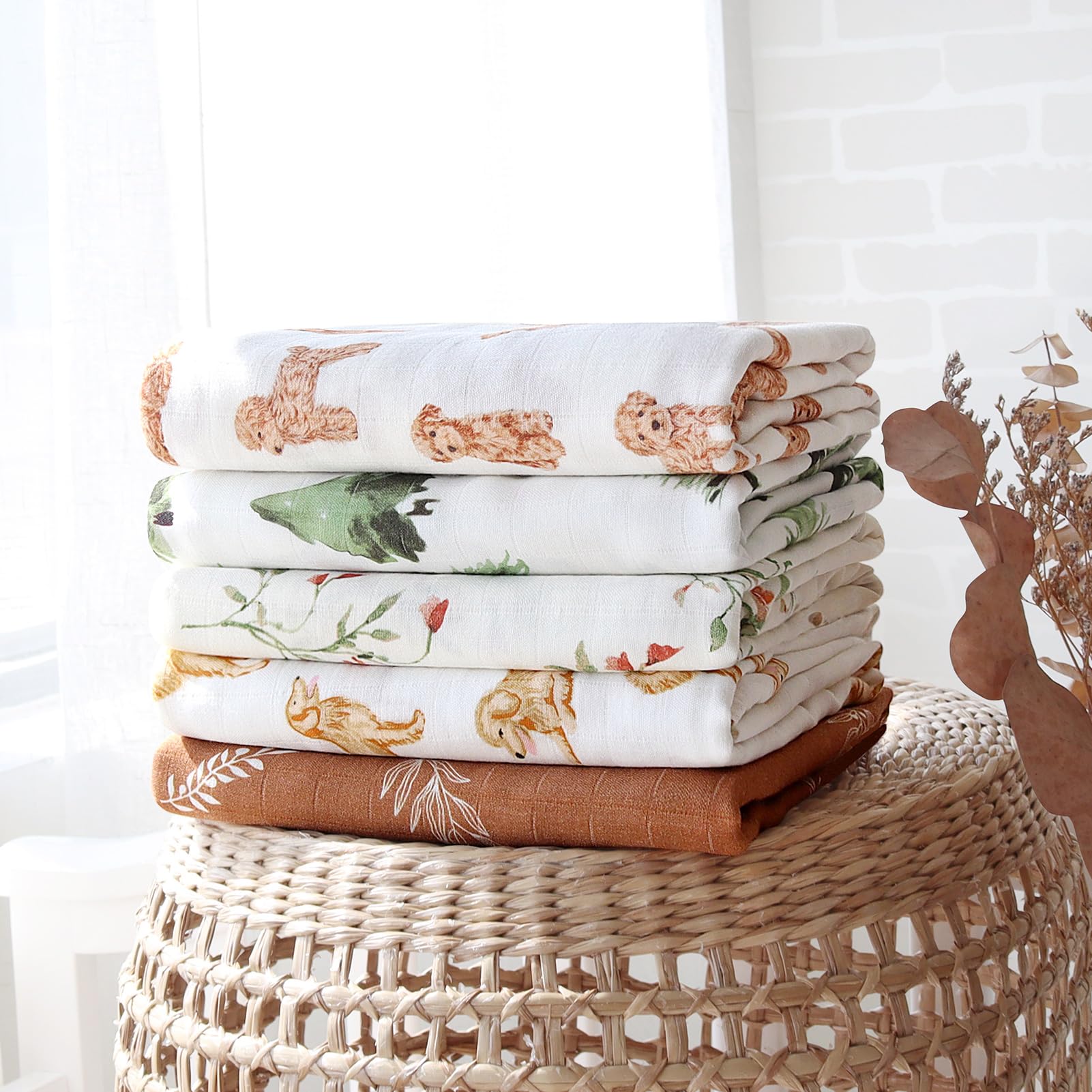 Generous size - 47" X 47'' (120 x 120 cm), Our large puppy baby blanket provides you and your little bundle of joy with enough space for wrapping & swaddling without having to fear that she / he will outgrow the blanket too soon! It's the best to pack in the hospital bag as newborn receiving blankets and photo drops.