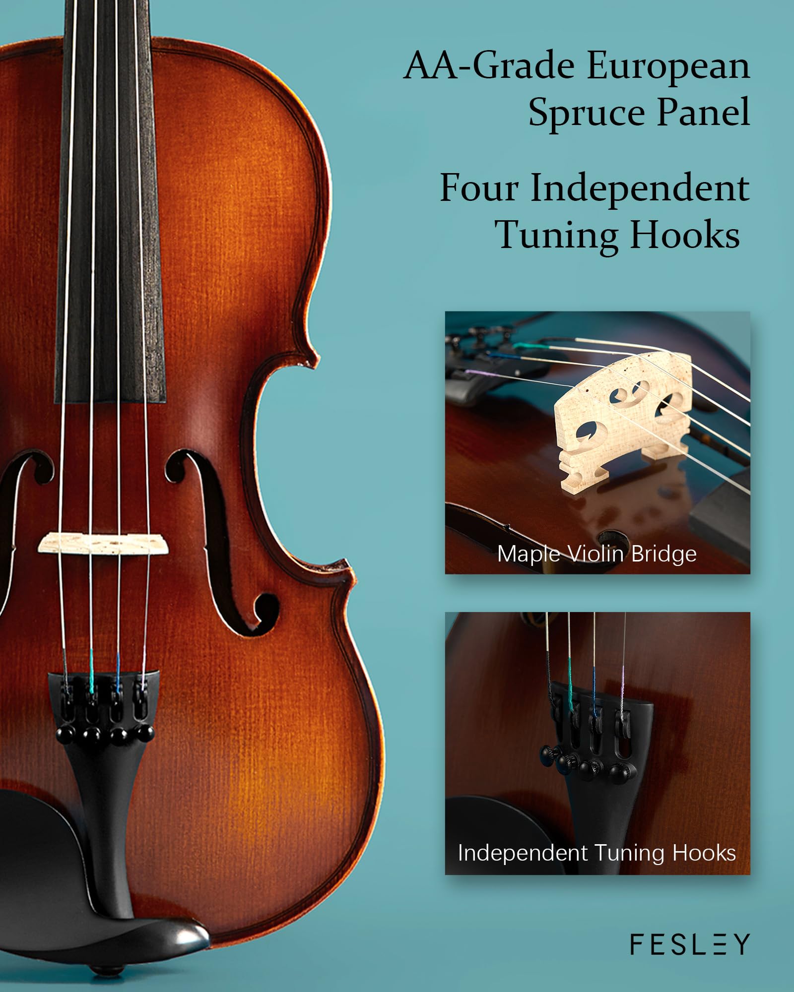 Handmade with Precision: Expertly selected aged tonewoods, including solid spruce for the top and maple for the back, contribute to the violin's exceptional resonance and tonal depth. Each violin is meticulously crafted by skilled artisans, from the wood to every single fitting, a handmade violin will be carefully designed and crafted to achieve your best expectations as a musician and add to your music.