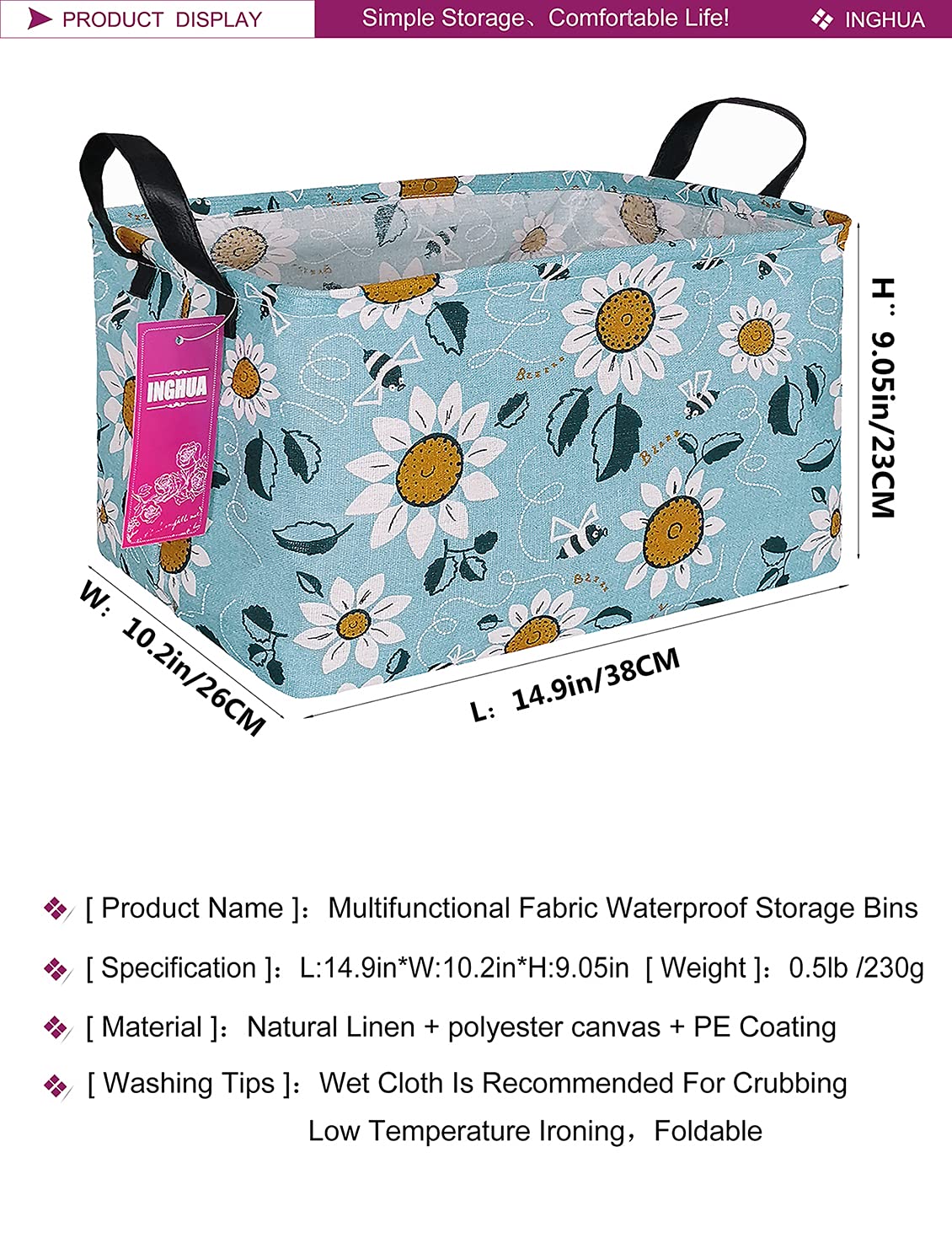Material:Made of high-quality Polyester canvas + linen fabric fabric , waterproof.