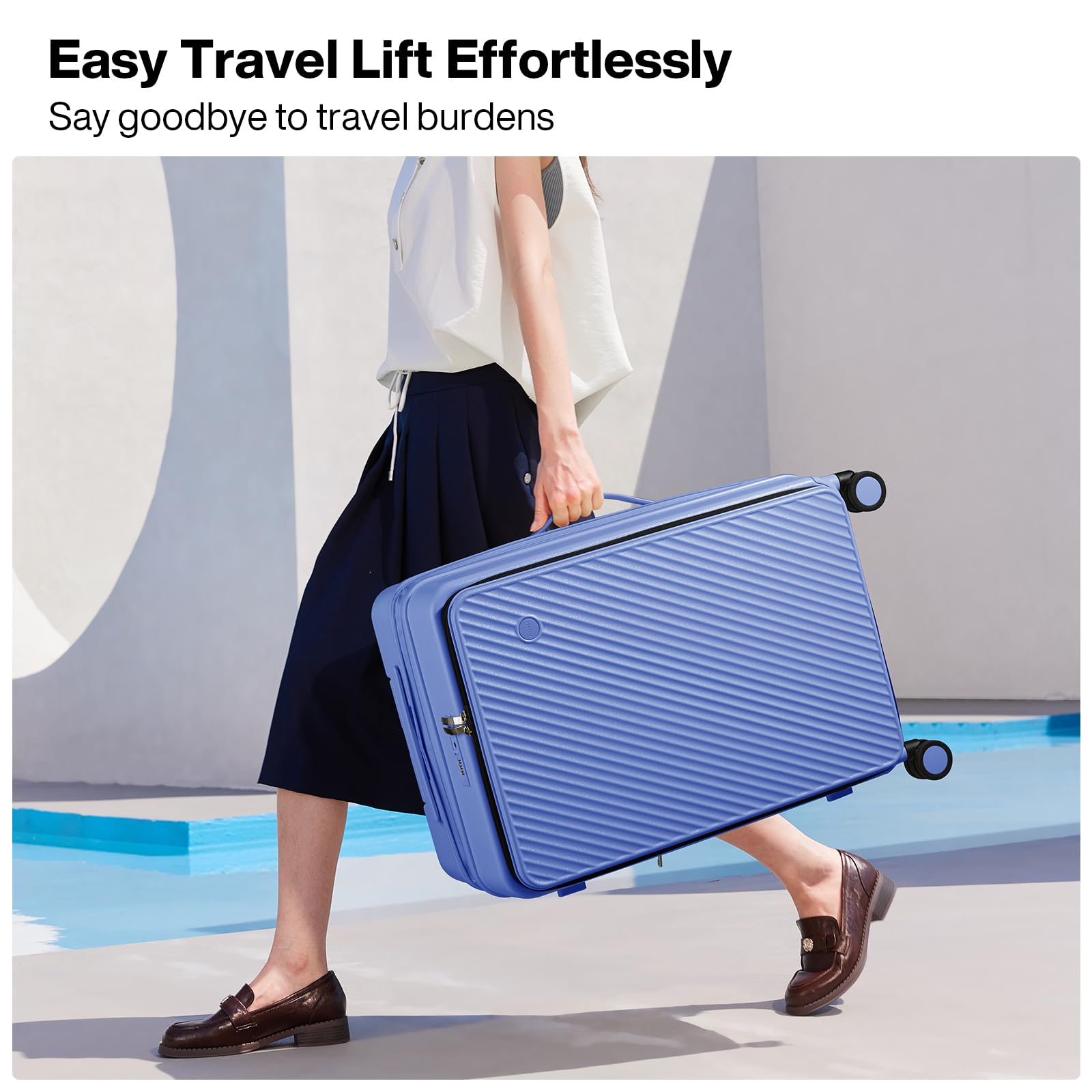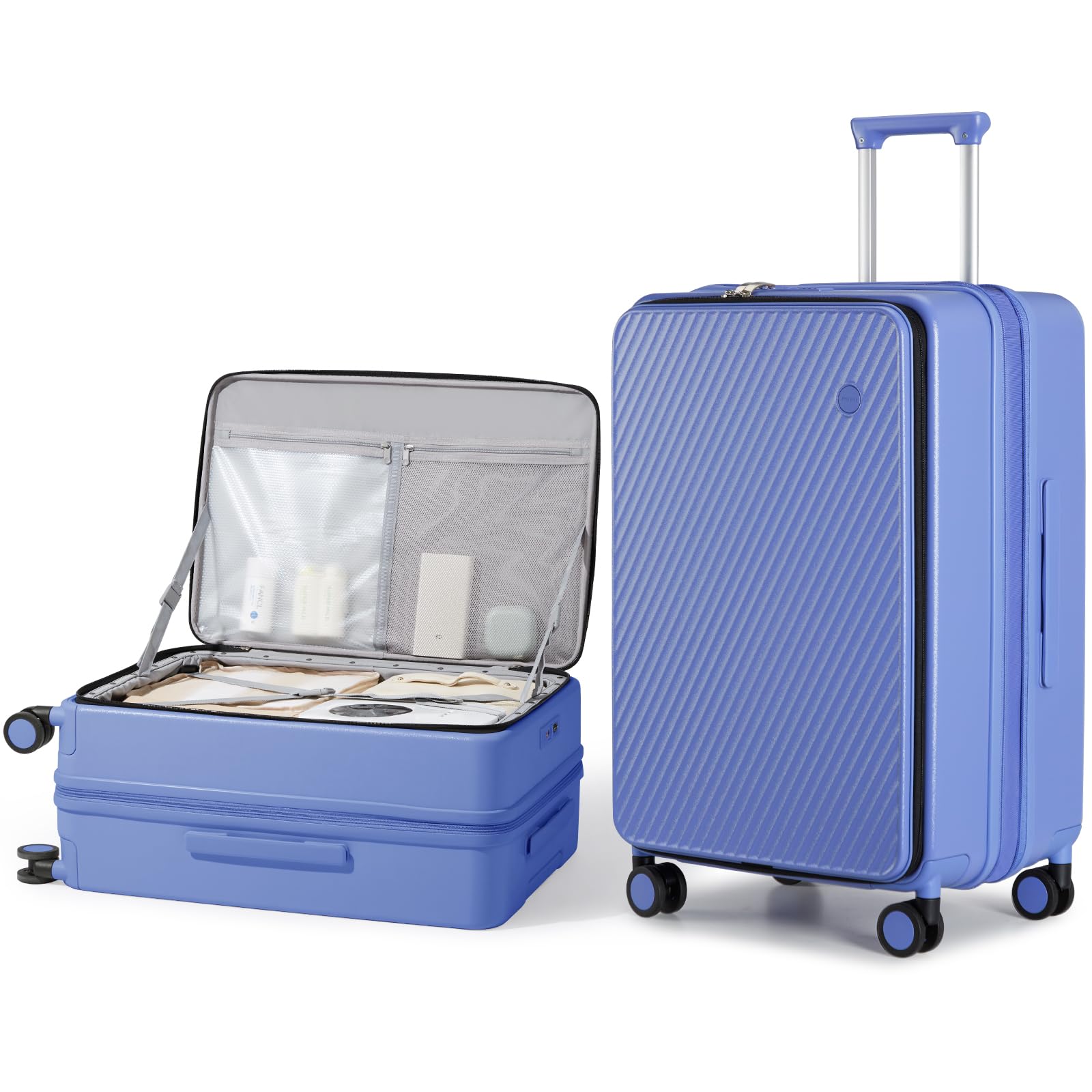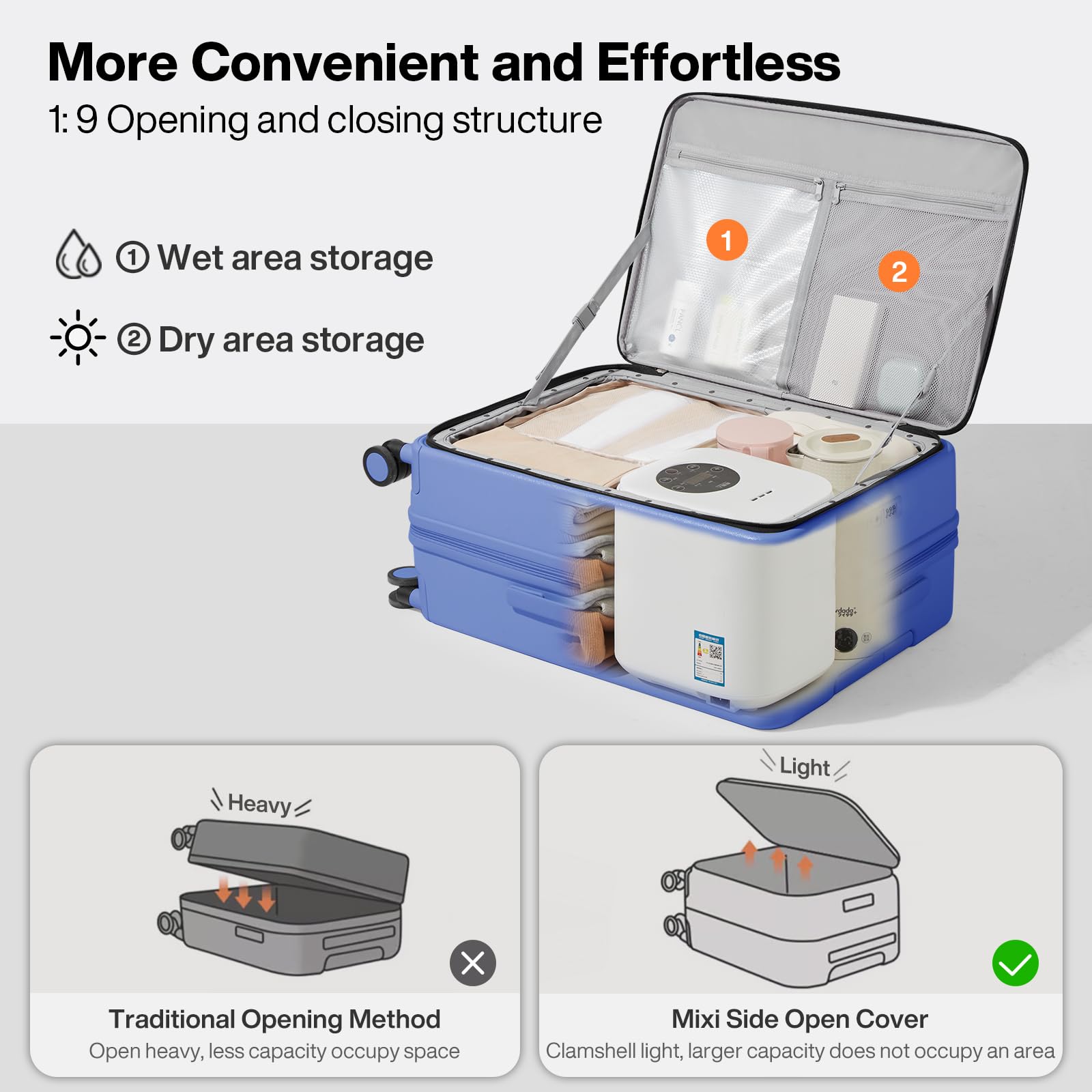 【Creative Side-Opening Design】Say goodbye to traditional and heavy clamshell luggage. Mixi luggage adopts an innovative 1:9 side-opening design, which is more convenient and labor-saving. You can open it in any crowded place and easily access your items