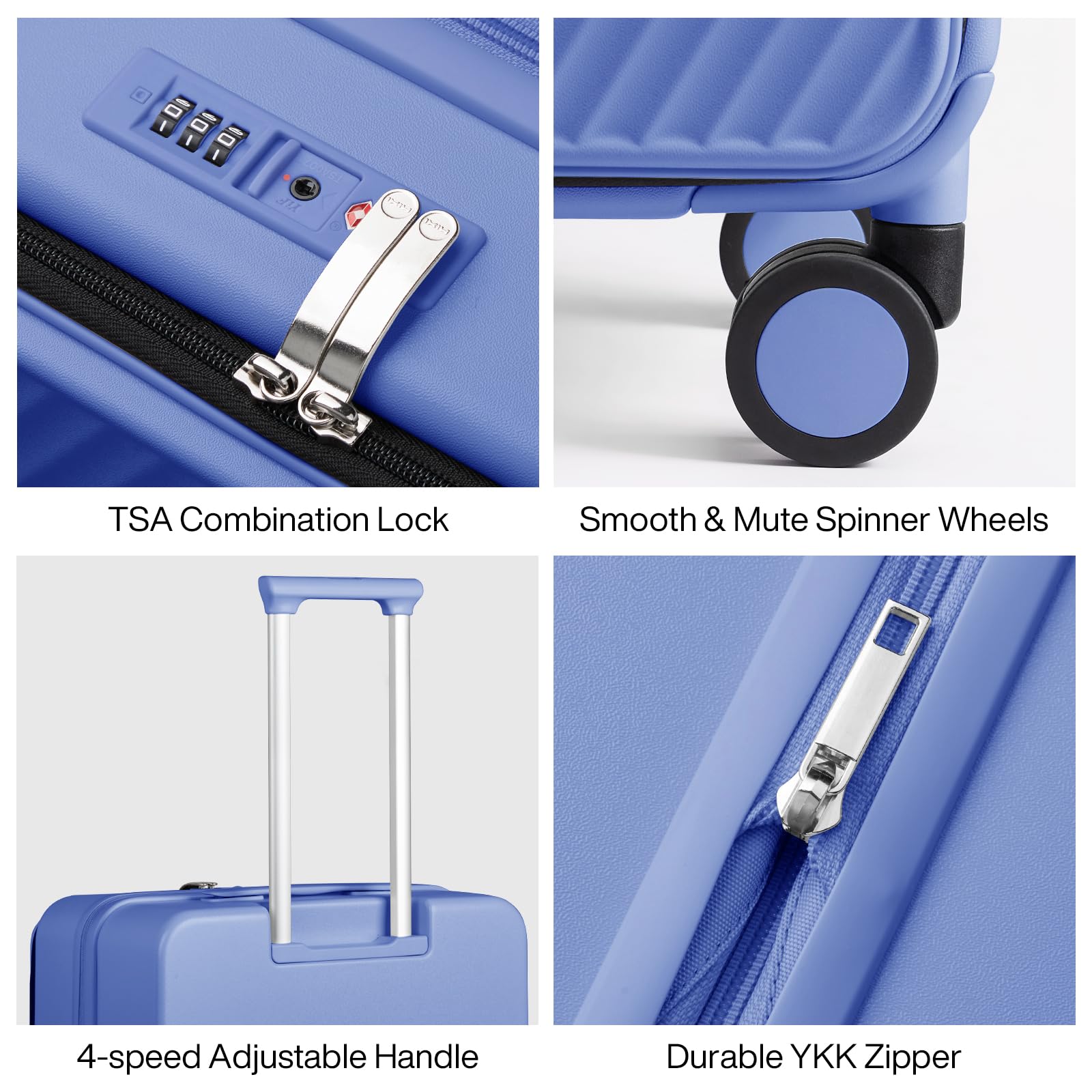 【Quality Accessories】High-precision dual-row spinner wheels are durable and smooth, adaptable to various surfaces including cobblestone roads and carpets. YKK brand zipper designed for long term use; TSA combination lock can easily pass most international countries customs security check without damaged the suitcase