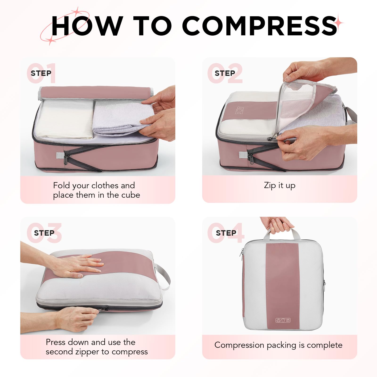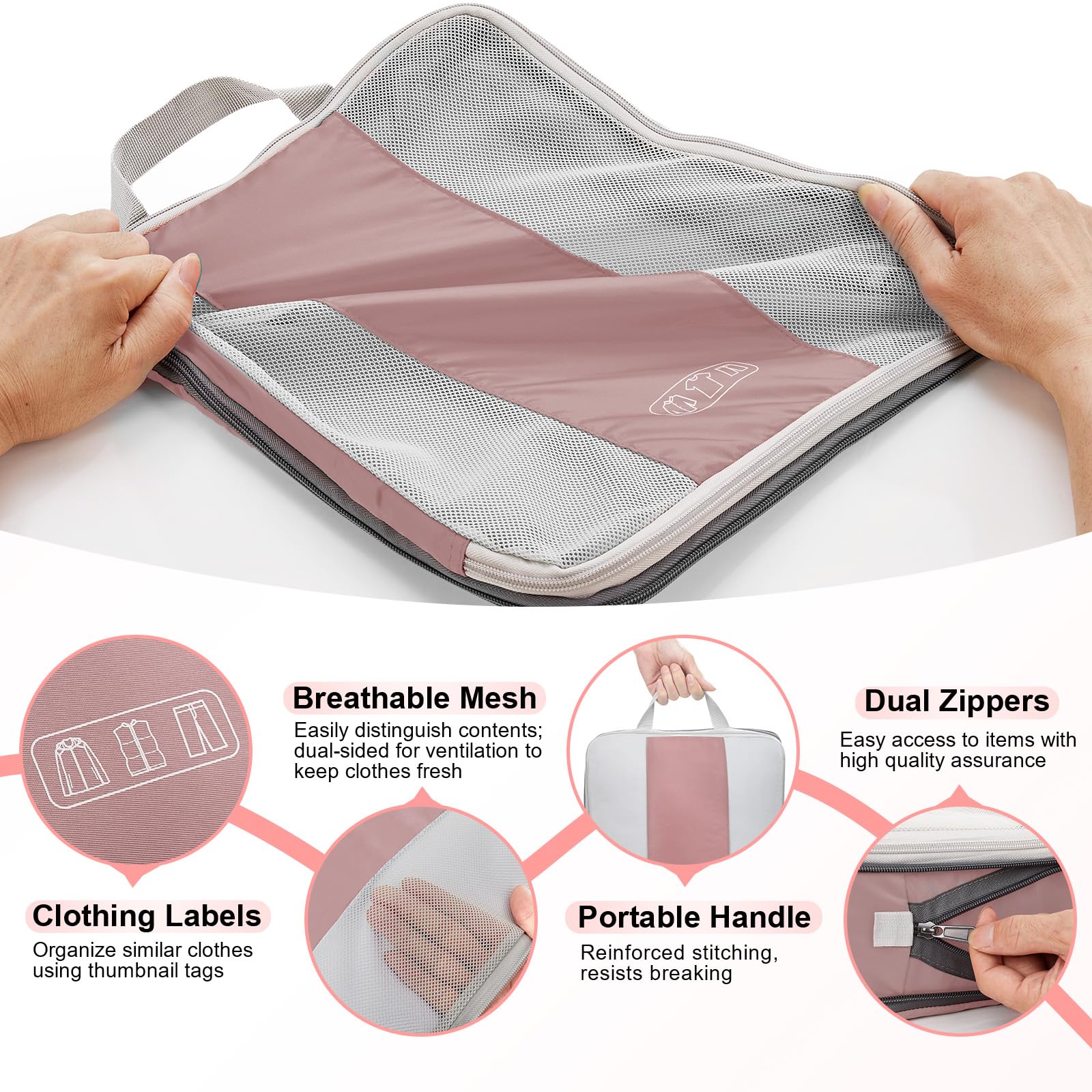 Maximize Packing Efficiency - Make every inch of your luggage count! These compression cubes work like a mini vacuum sealer, using an extra outer zipper to reduce bulk and create more space. Pack more clothes without sacrificing options—your favorite outfits, now travel-ready.