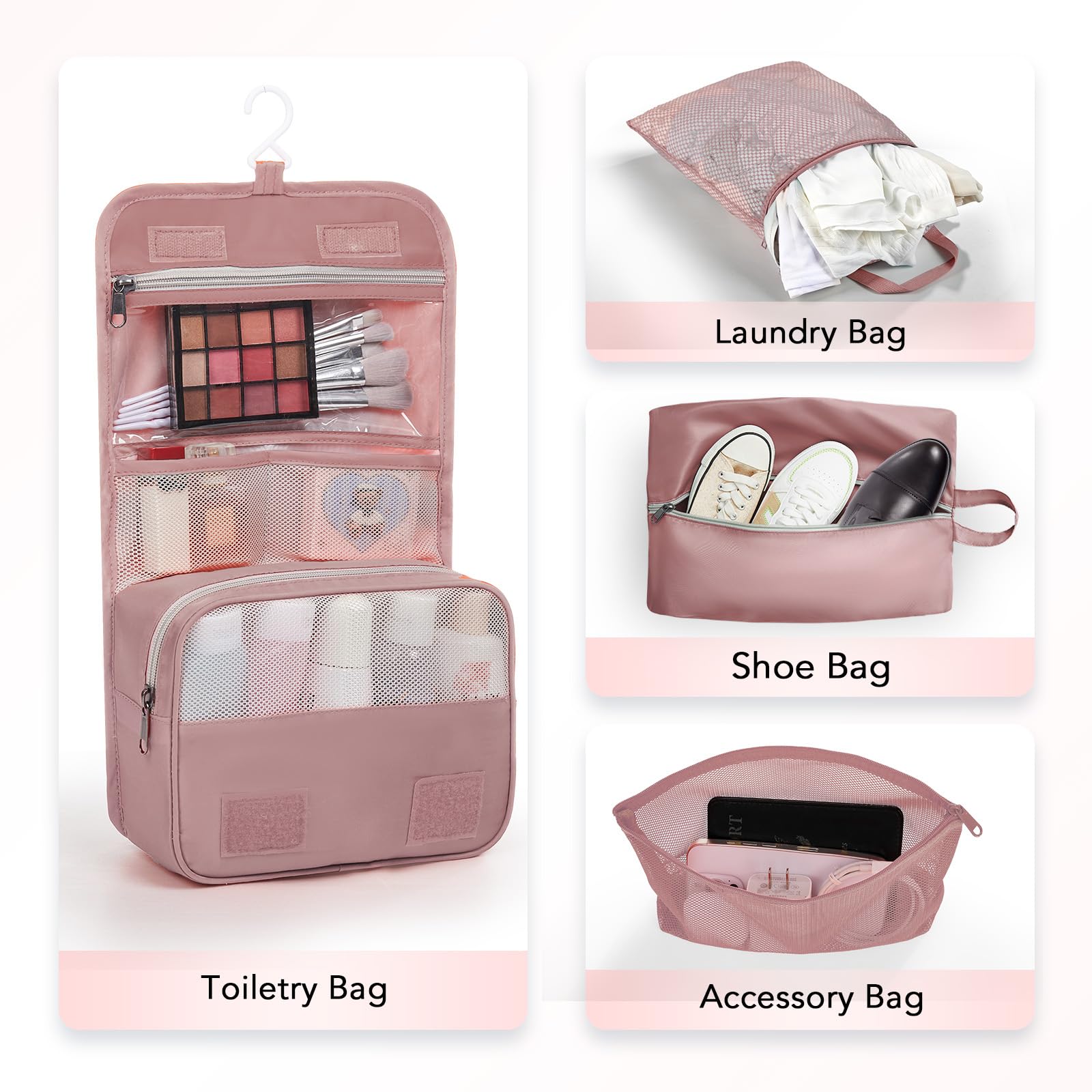 All-in-One Travel Storage Solution - Say goodbye to chaotic packing! This comprehensive set includes four compression packing cubes in varying sizes (XL, L, M, S) to accommodate everything from bulky coats to delicate tops. Plus, enjoy added convenience with a hanging toiletry bag, shoe bag, machine-washable laundry bag, and versatile pouch—all designed to keep your luggage perfectly organized and clutter-free.