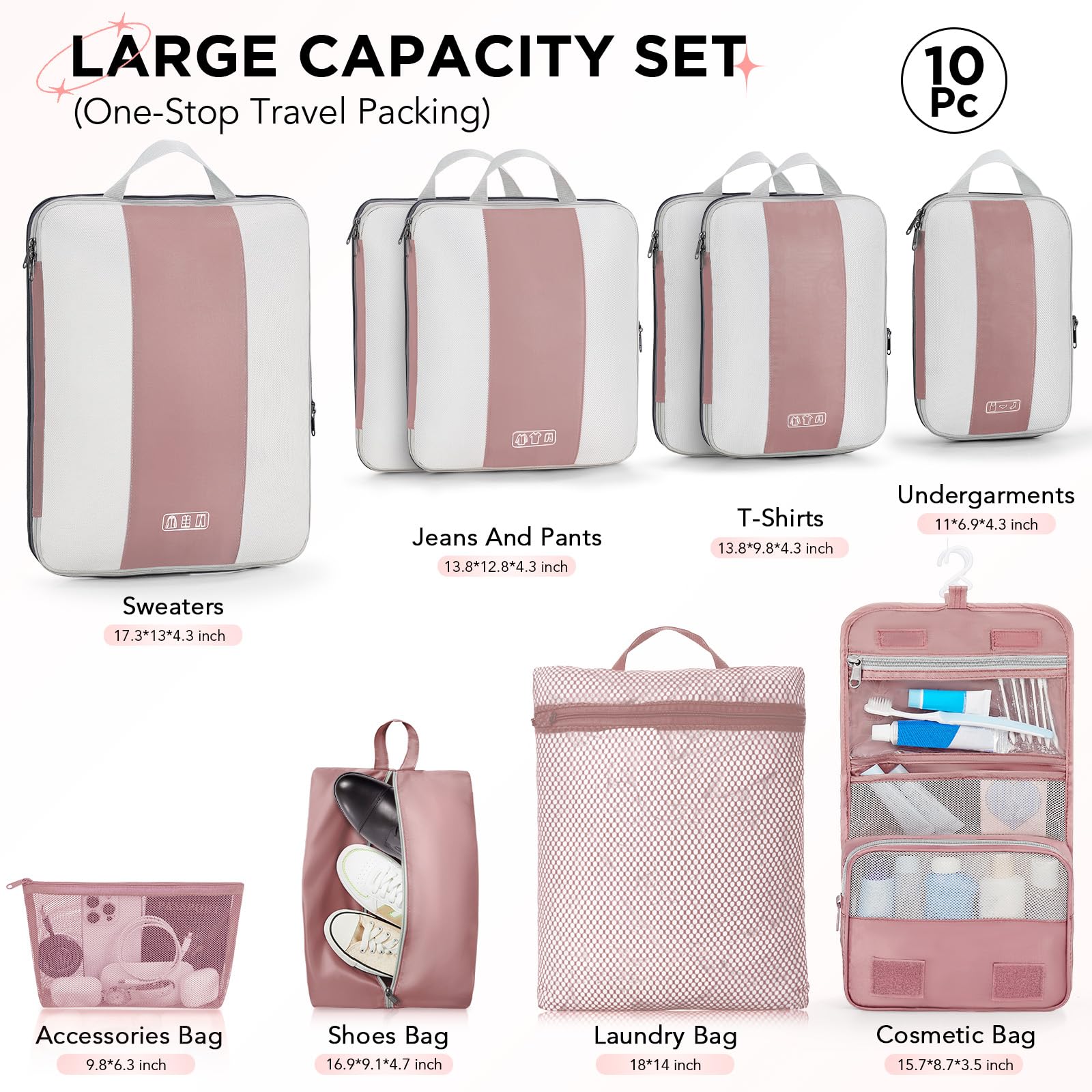 Ready for Any Adventure - Whether you’re heading out for a weekend getaway, a business conference, or a month-long backpacking trip, This high-capacity 10-piece compression cet seamlessly accommodates 20-32-inch suitcases of all types. We’re here to ensure you travel smarter, pack better, and enjoy every moment of your journey with peace of mind.