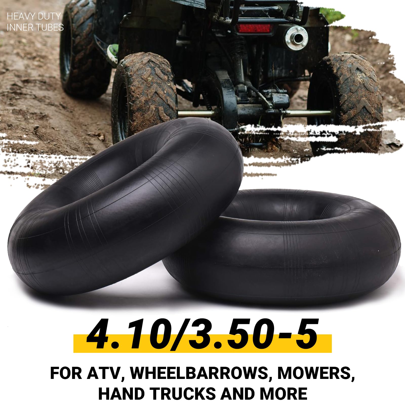 4.10/3.50-5 Replacement Inner Tubes: Fits vehicle with 5’’ rim, like lawn mowers, hand trucks, wheelbarrows, yard trailers, dollies, trolleys, wagons, snow blowers, persuure washers, air compressors, generators, go carts, wood chippers and more – guaranteed fit!