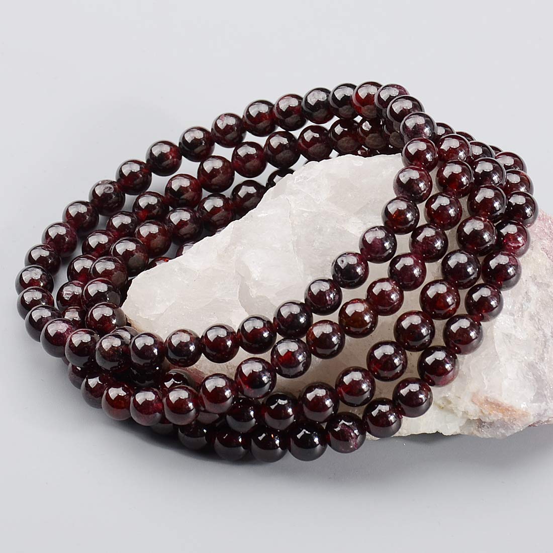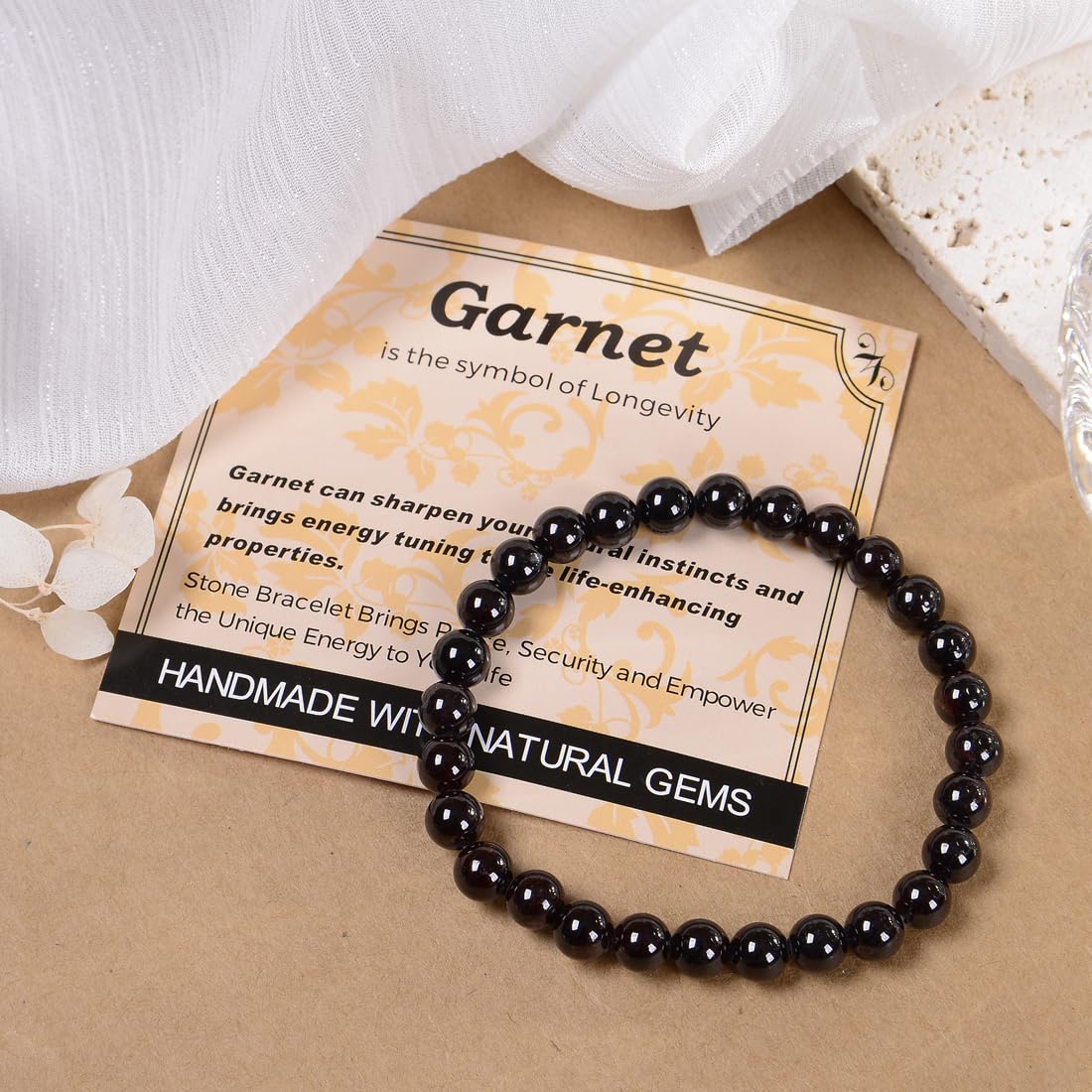 💝 [High Quality Materials] Material: Garnet; Size: 6mm(diameter); Elastic Handmade Bracelet.