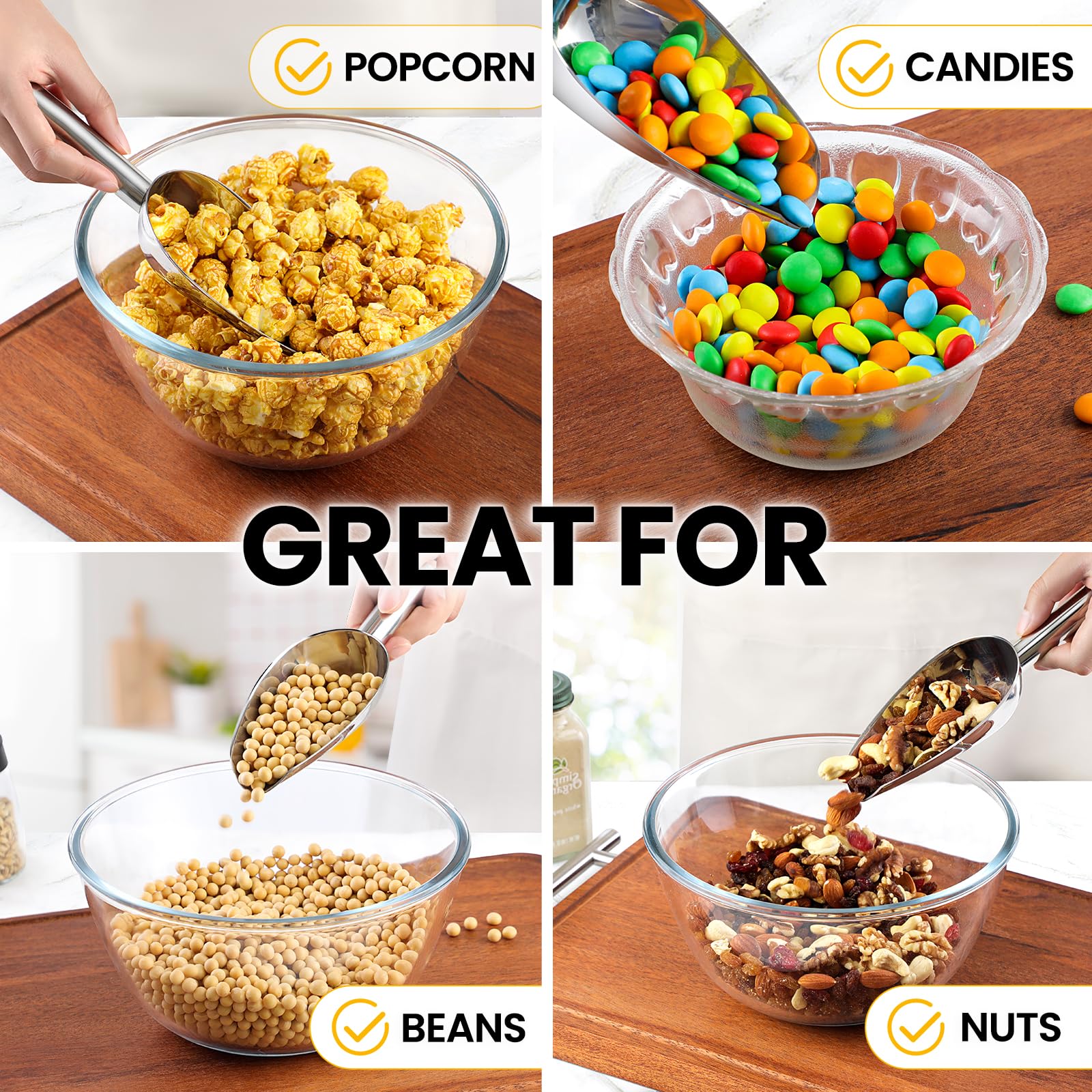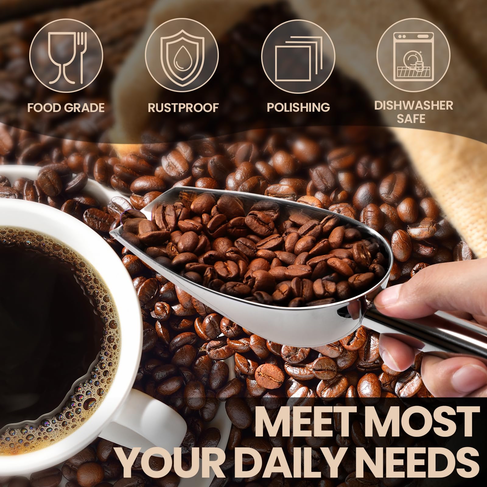 DISHWASHER SAFE: The scoop features a superior mirror-polished finish, which makes it easy to clean and maintain. Unlike aluminum, it retains its shiny surface after washing and always looks as good as new. Simply rinse with water or toss it in the dishwasher—it's dishwasher safe to save you time and effort.