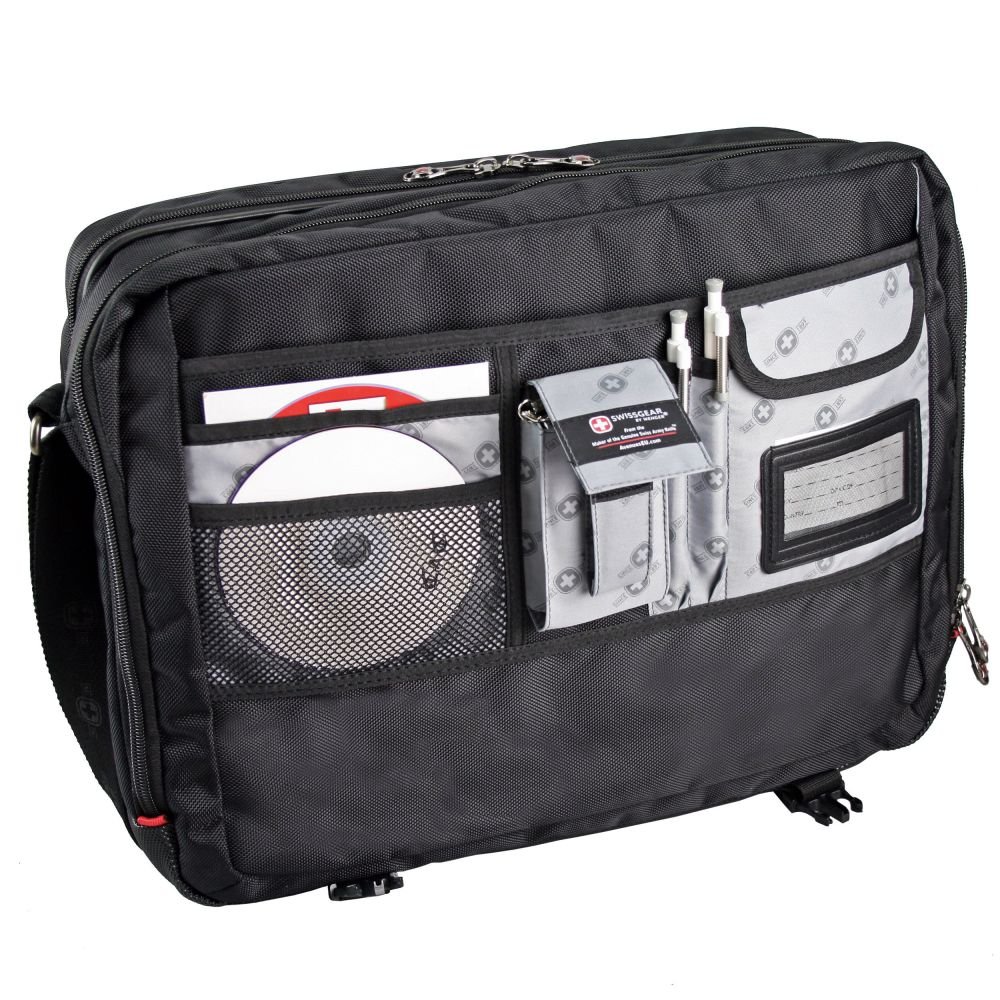 Wenger / Swissgear is the maker of the genuine Swiss Army Knife, leveraging our complementary strengths. Both of us protect your data and combined, we can provide you with more than either company could offer in its own right. Saturn WENGER Messenger Bag designed to fit notebooks with screen sizes up to 17 inch. The Saturn has a padded Computer Pocket to help protect your laptop/notebook. The Saturn has a tear resistant shoulder strap and a reinforced ergonomic handle to give comfortable carrying options. The exterior zipper pockets and secure snap closures mean that your valuables will be kept safe. The essential organiser incorporated in to this bag has pockets and slots for your pens, phone, MP3 player, business cards, ID, and more. Put your mind at ease when travelling as complies with most airline restrictions for hand luggage. If all this isn't enough for you it also boasts a lifetime warranty.