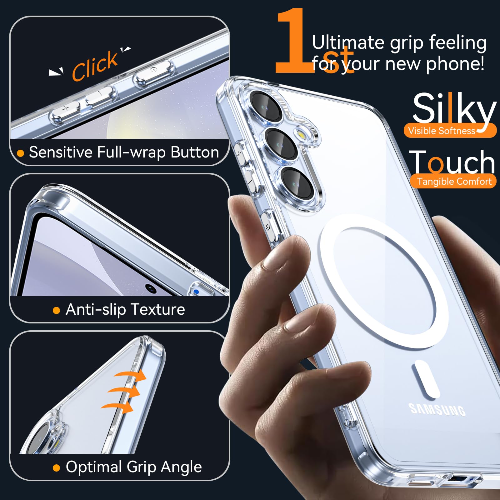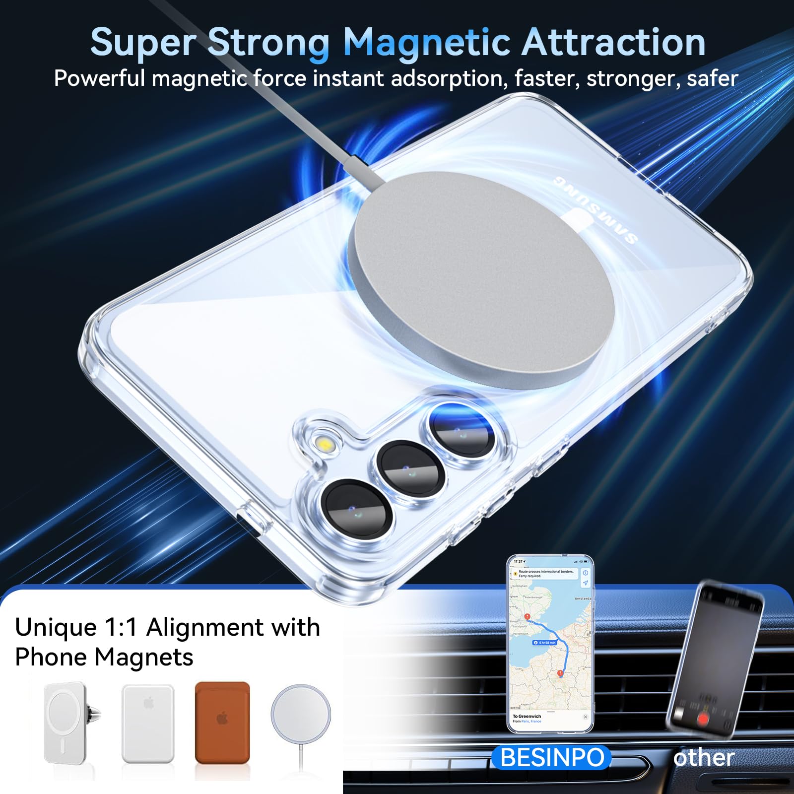Magnetic & Wireless Charging Ready: Built-in magnets make the s25 plus phone case effortless to snap onto a magnetic wallet, car mount, or grip, and you can drop the s25+ phone on a wireless charger without taking the samsung s25 plus case off. With magnetic clear samsung galaxy s25+ case, your Galaxy S25 Plus stays powered and ready without the hassle