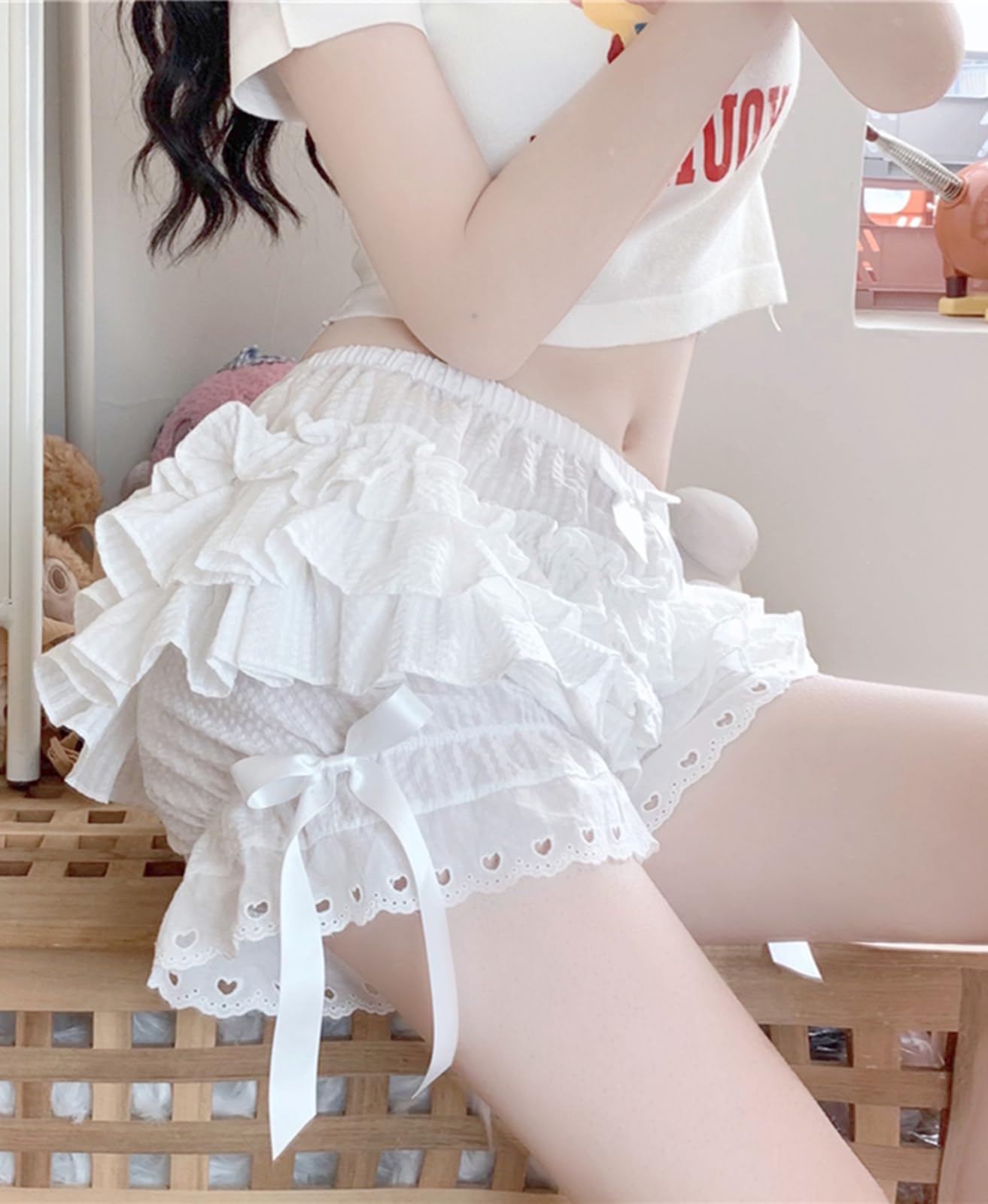 Y2k look: One size fits US0-US14 size, fit most body types and ages.Women's victorian gothic lolita ruffle pumpkin shorts, kawaii layers ruffle bloomers under shorts.