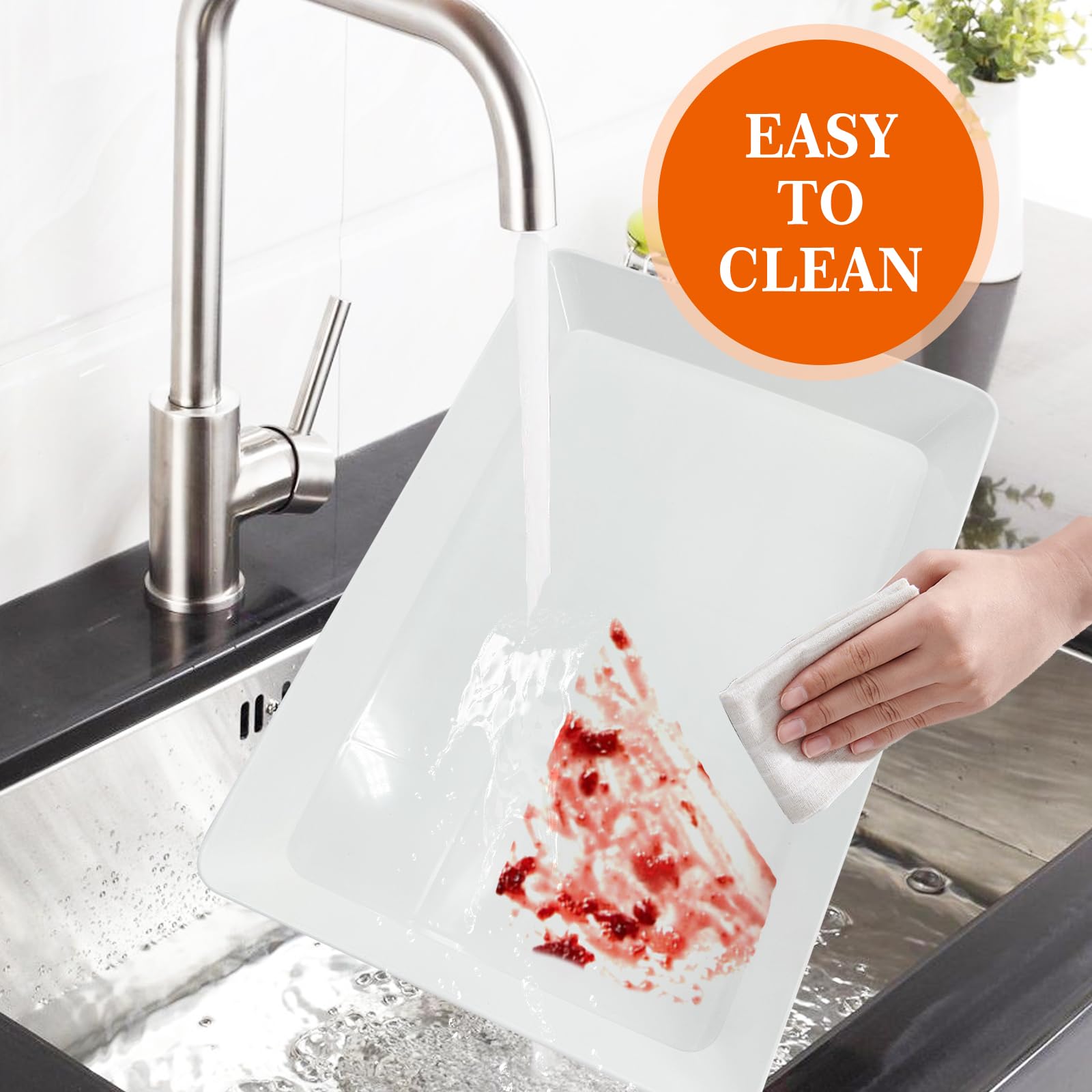 Easy To Clean: For your party needs, our white serving platters, eating tray, and plastic food tray are ideal. They're easy to clean, ensuring a clean and hygienic setting. Add charm with our candy dishes, all part of our top - notch party supplies