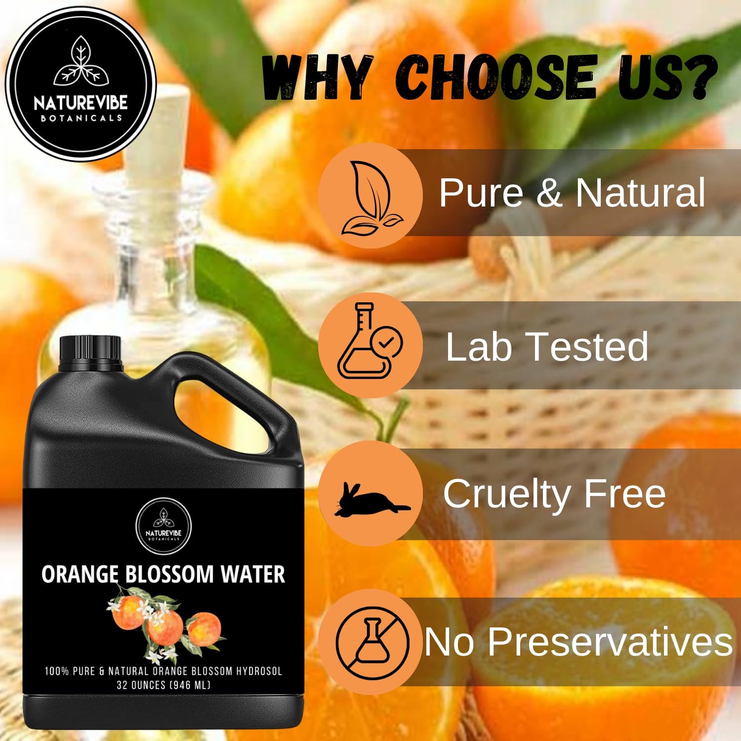 โ Orange Water 32 Ounces by Naturevibe Botanicals | 100% Pure & Natural Orange Blossom Hydrosol | Facial Toner Great for Hydration | Mist for Hair Face and Skin | DIY Body Care (946 ml)