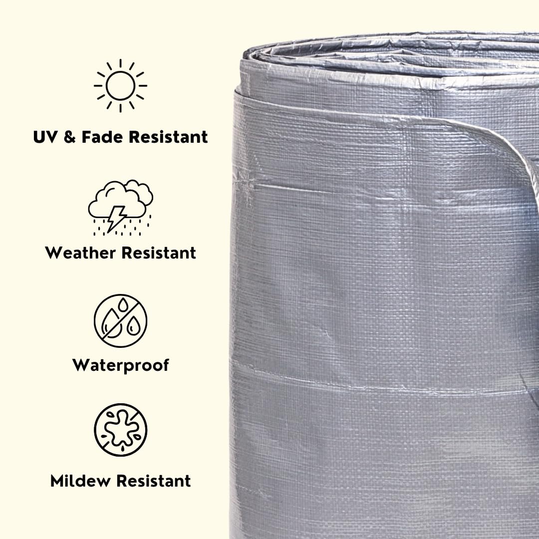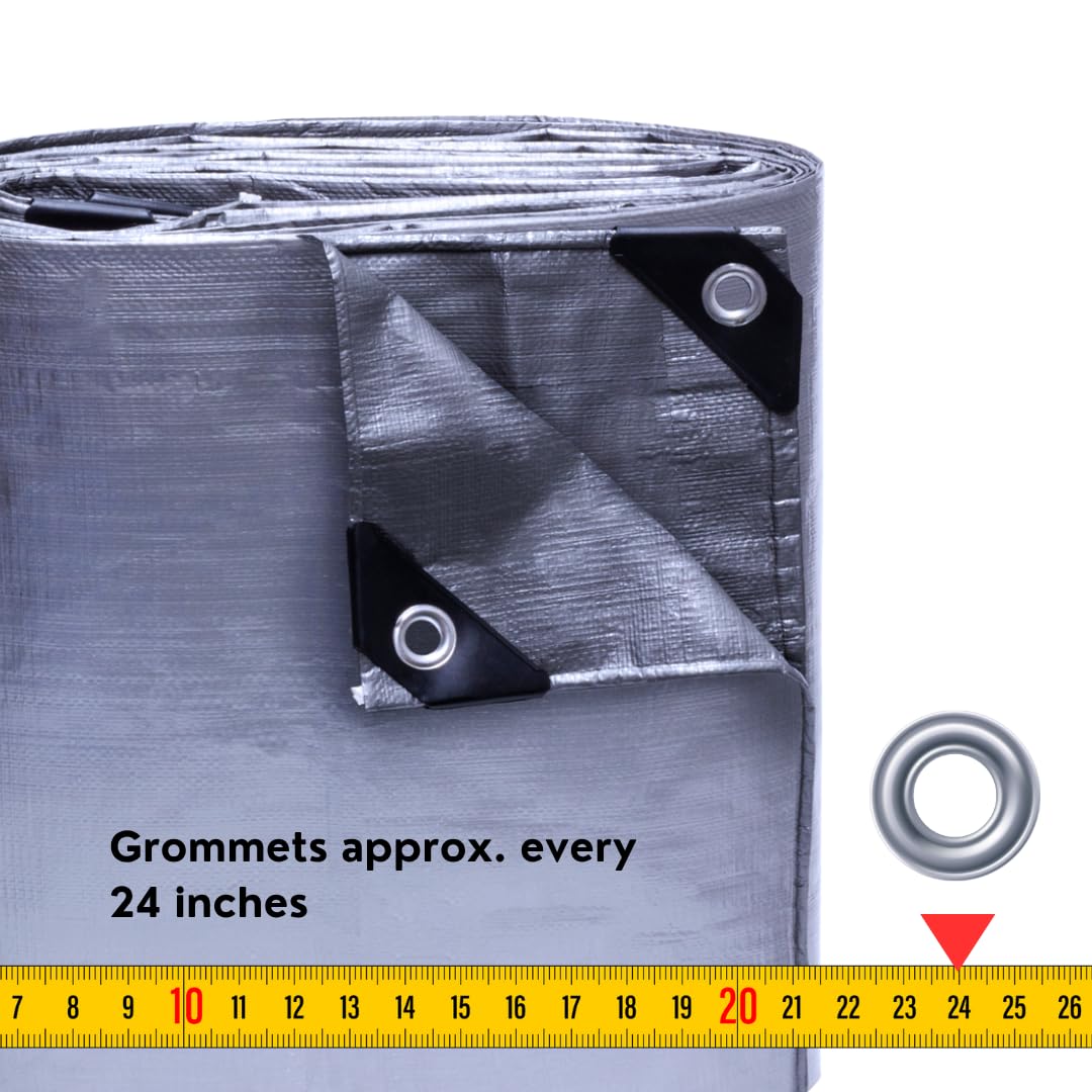 METAL GROMMETS & REINFORCED EDGES: Features durable metal grommets spaced every 24 inches for secure tie-downs, with reinforced edges and strengthened corners for added durability and longer service life