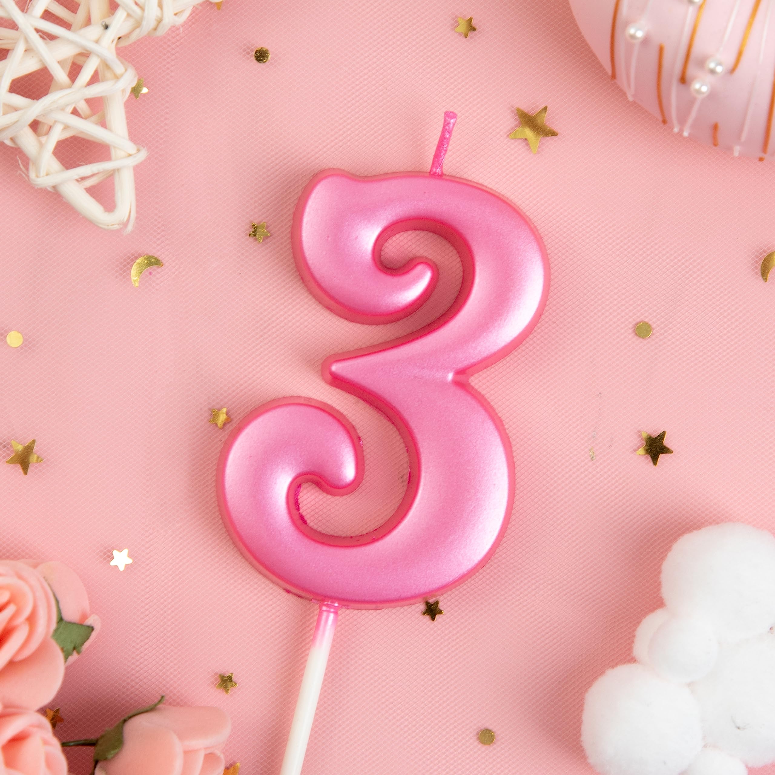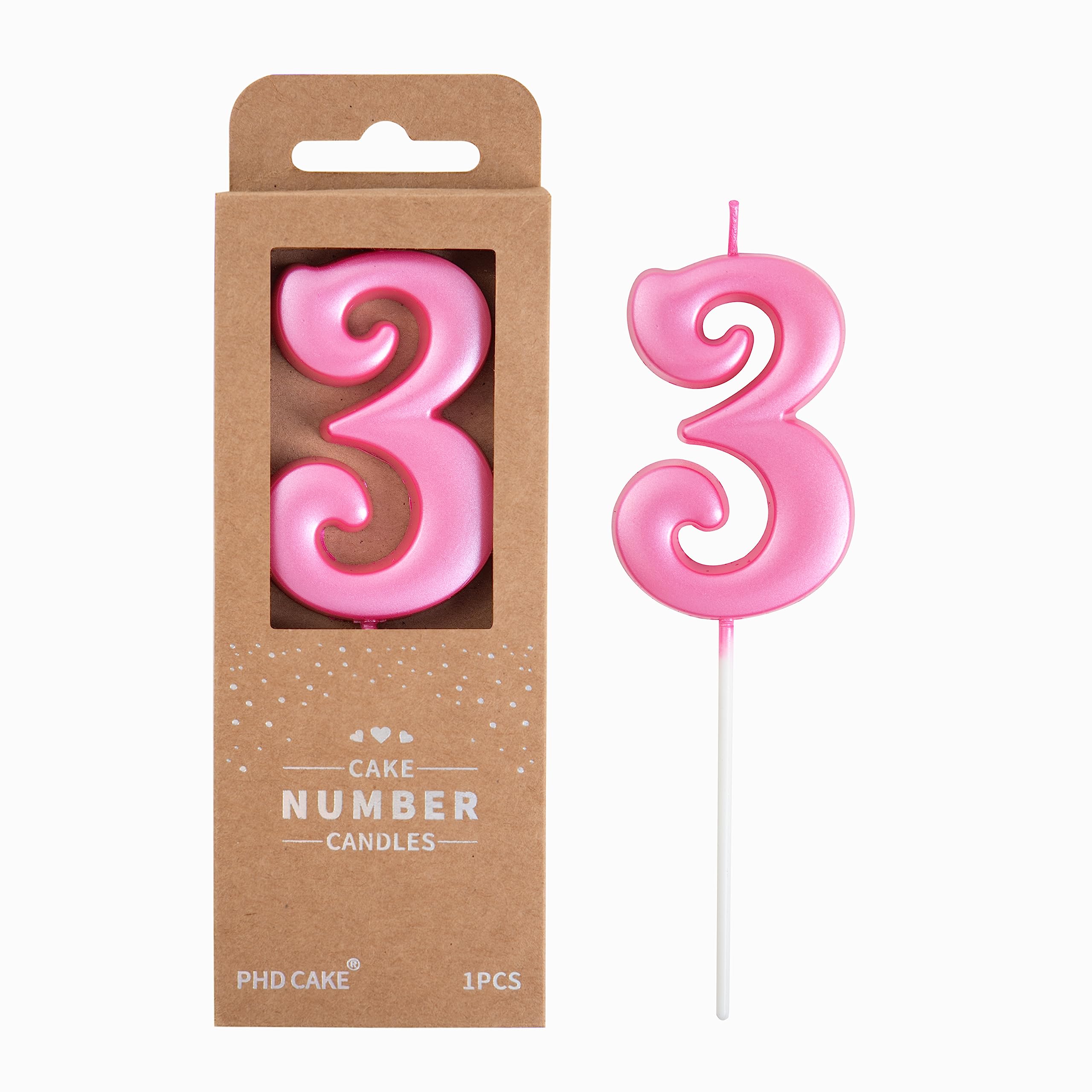 New: 2.76 Inch Large Elegant PINK 3 Number Birthday Candle designed to make your cake and birthday a unique and truly inspiring event.