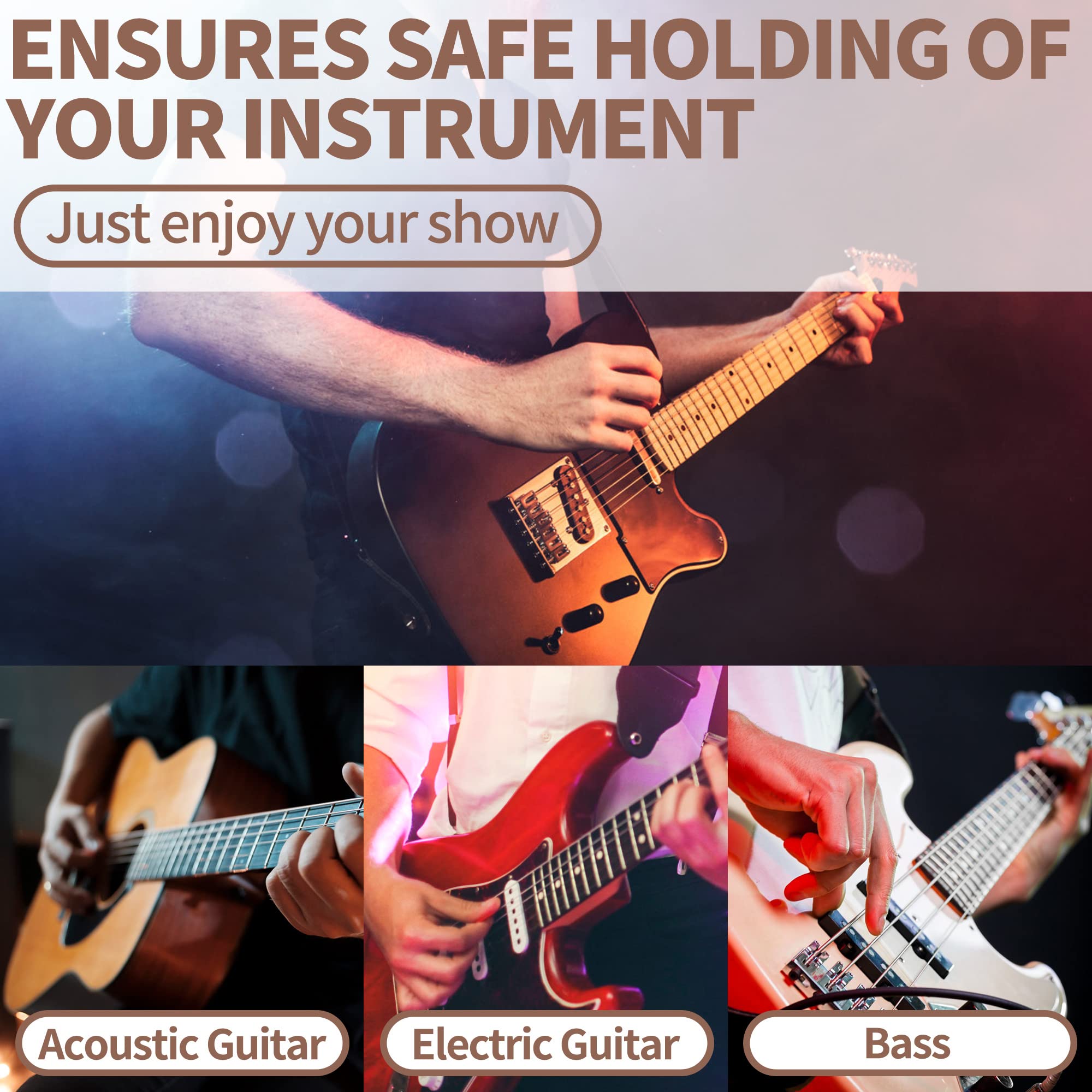【COMPATIBLE WITH ALL GUITARS】A great various application for acoustic guitar strap, electric guitar strap, bass guitar strap, ukulele strap and banjo strap. The guitar strap is adjustable and perfect for men, women and children guitarists.