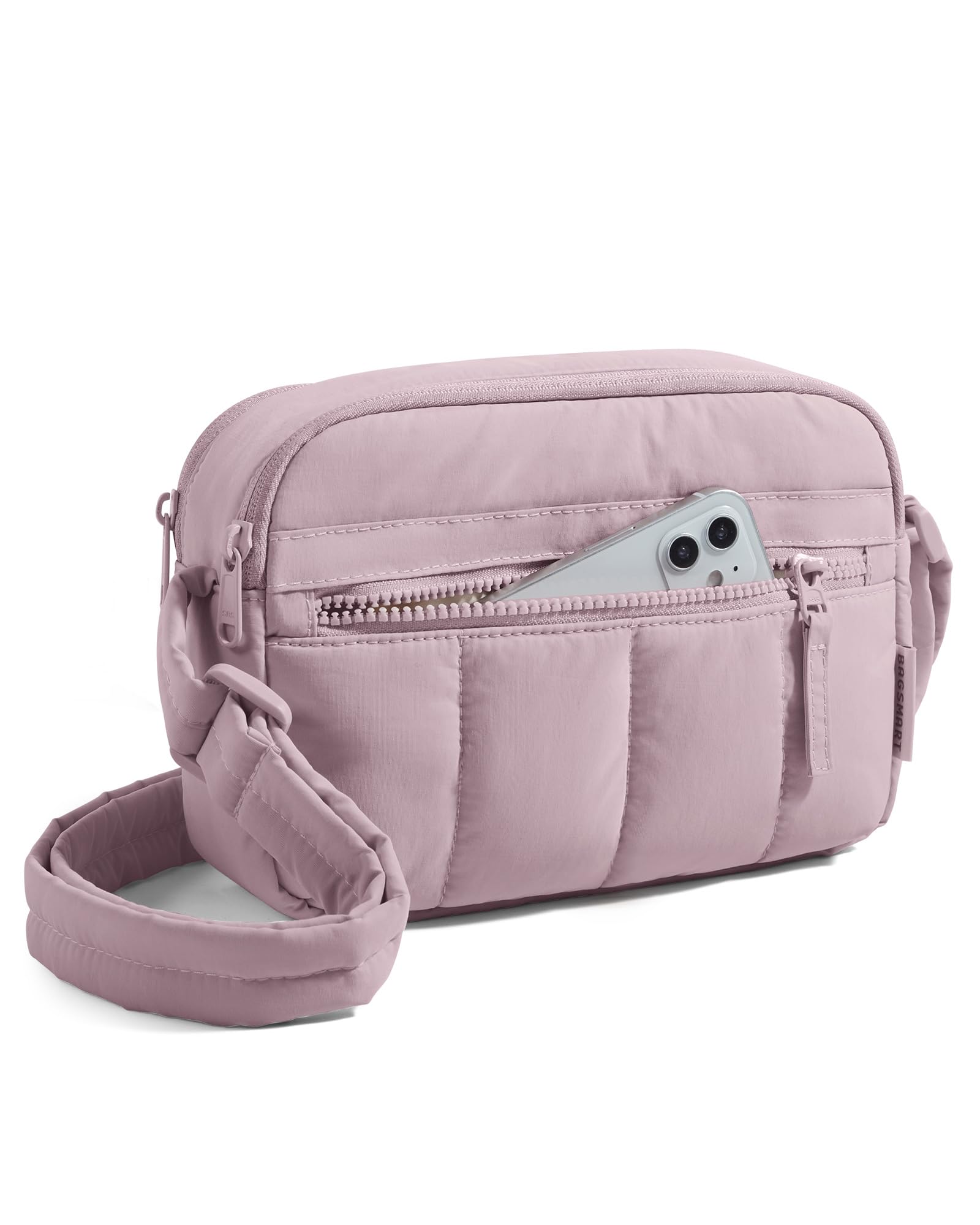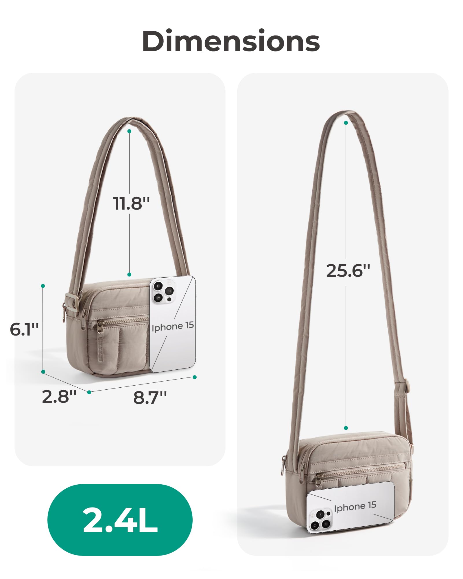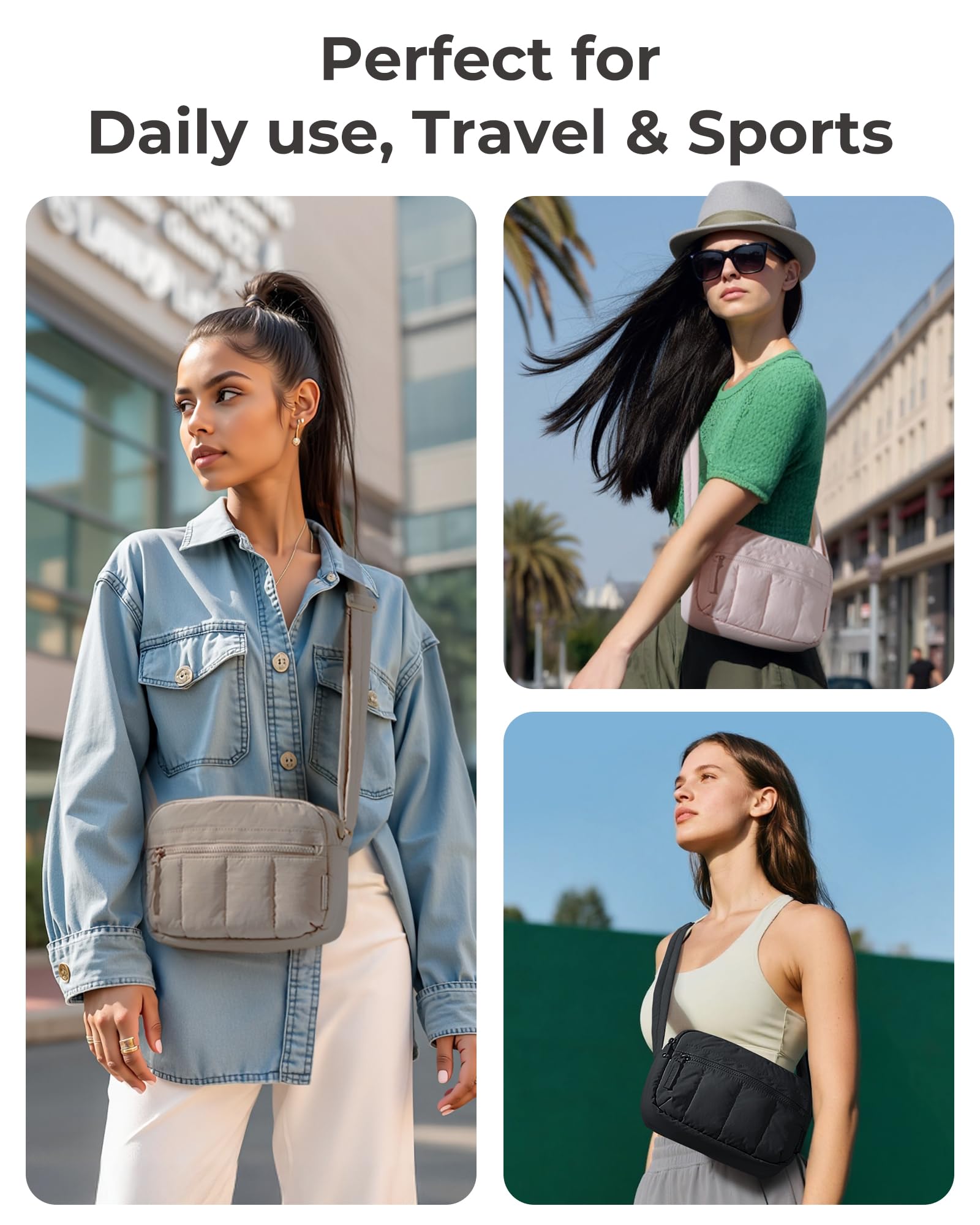 Material & Size: Lightweight & water-resistant puffy crossbody bag (just 0.33lbs)! Compact size 8.7''x2.8''x6.1'' with 2.4L capacity - perfect daily essentials