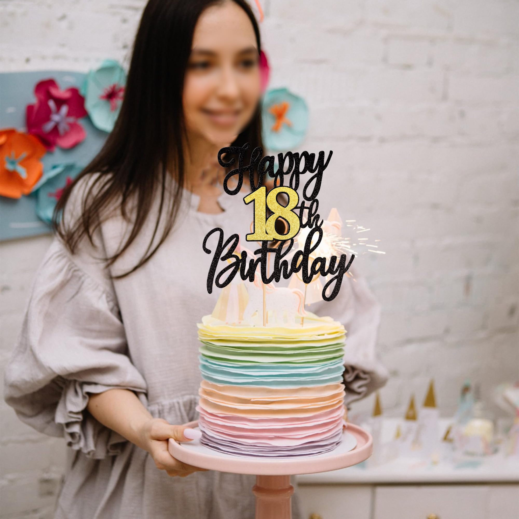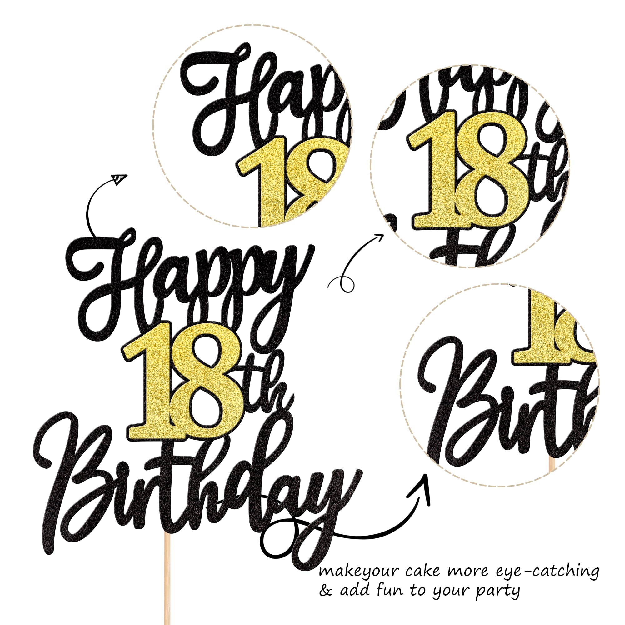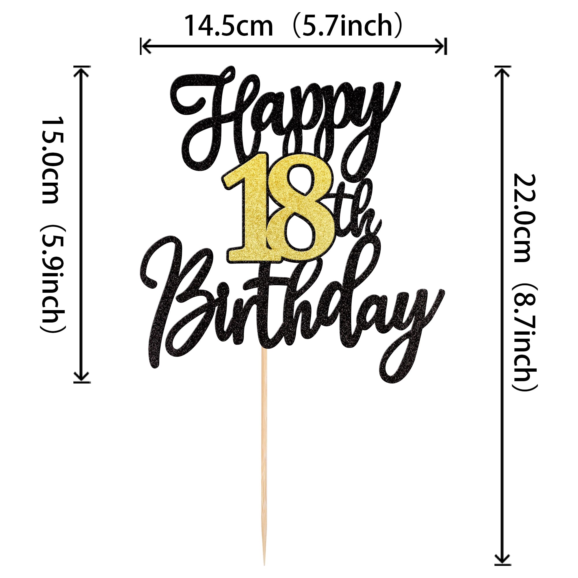 Happy 18th Birthday Cake Topper for Cheers to 18 Years 18 Fabulous Happy 18th Birthday Anniversary Theme Party Cake Decorations Supplies. perfect for happy 18th birthday theme party, cheers to 18 years theme party, 18 fabulous theme party, happy 18th birthday anniversary theme party cake decorations supplies. Pack of 1 pcs. The size is W 5.7 inch * H 8.7 inch / W 14.5 cm * H 22 cm ( with stick ) Made of high quality paper card stock and food grade sticks,thick and sturdy. This cake topper is one side glitter, another side is white, and this is intended for decoration only, please do not put them in oven or microwave. If the item you received has any defects, please contact us for refund.we will deal with it within 24 hours.