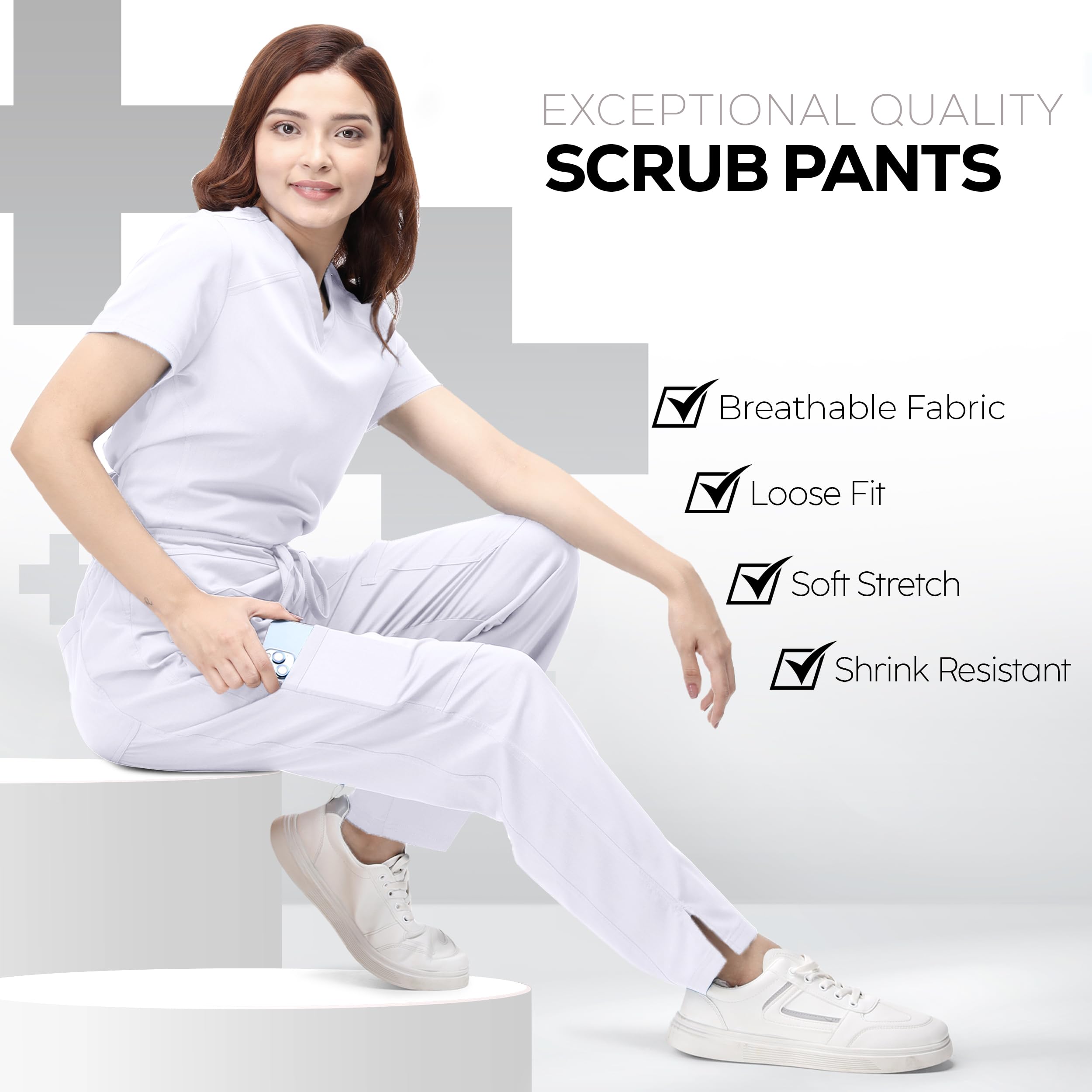 Flexible Movement: Benefit from scrub bottoms for woman made with soft stretch fabric that allows for easy movement and flexibility, perfect for those who are always on the go