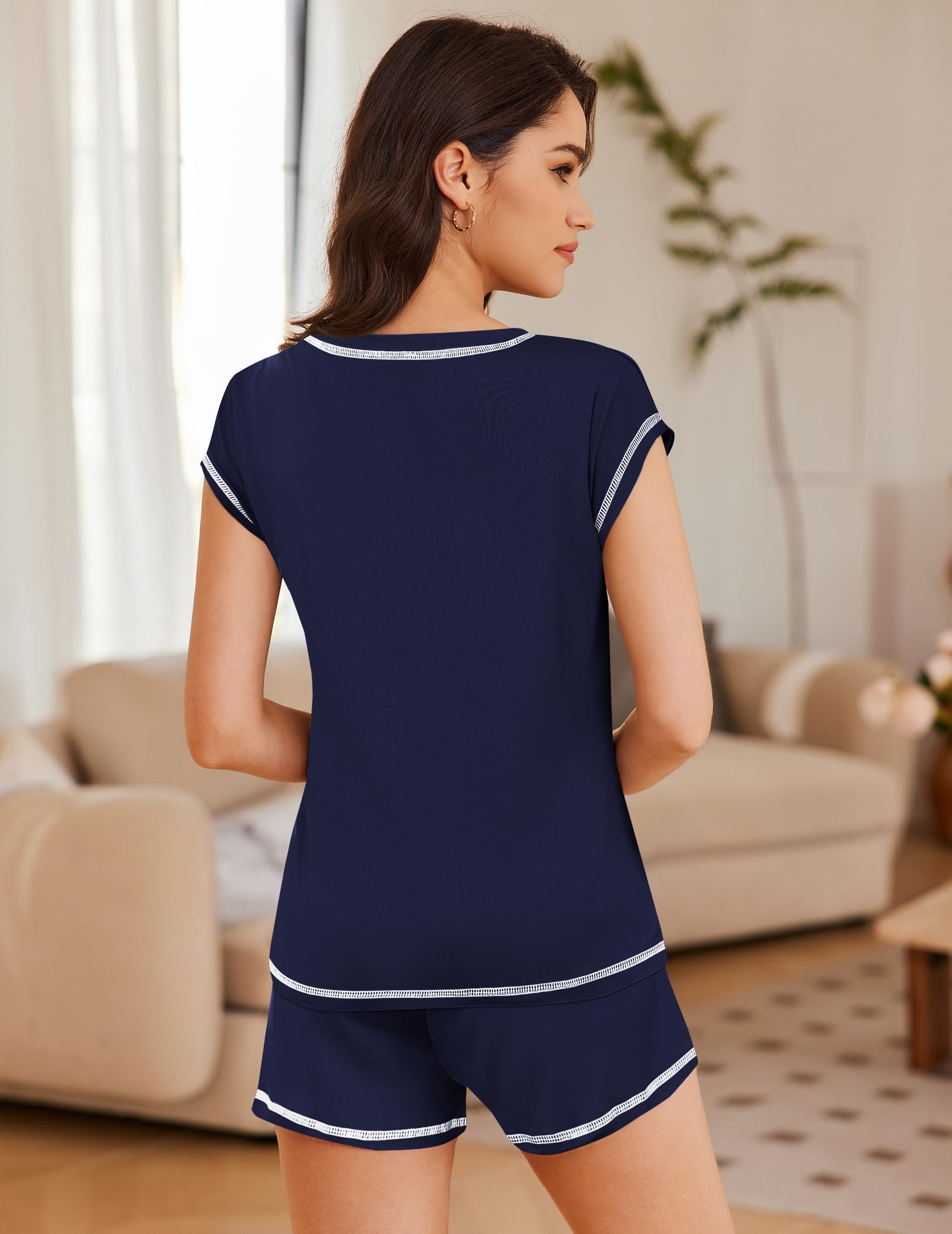 Two-Piece Pajama Set:Sleepwear featuring tops and shorts, offering a relaxed yet flattering fit that's both comfy and stylish