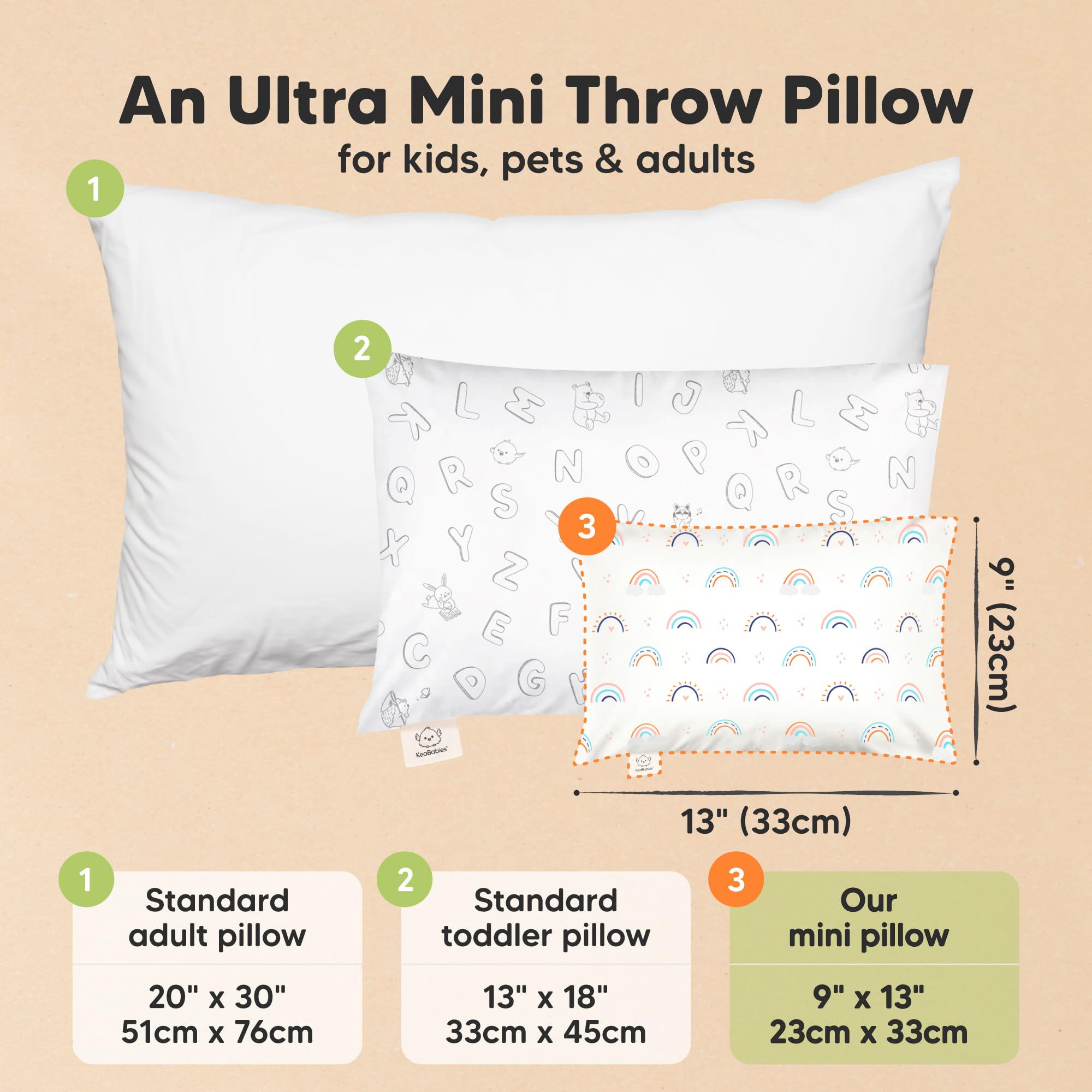 Introducing the 9"x13" Mini Toddler Pillow - A spin-off from the wildly popular KeaBabies My Little Dreamy Toddler Pillow. This small pillow is ergonomically crafted for sleep, play, and travel, and is sure to become your child's new favorite pillow.