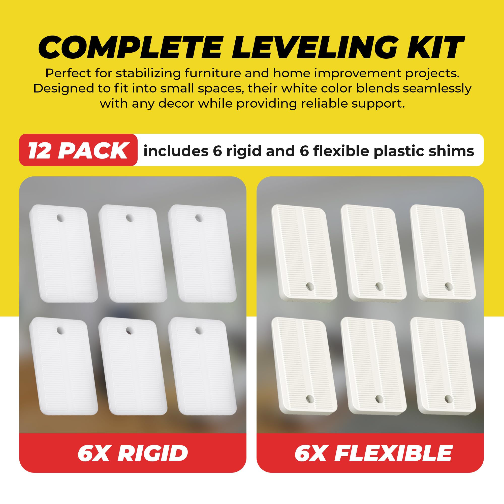 Plastic Shim Wedge Set Nonslip Furniture Levelers Combo Kit 6 Rigid and 6 Flexible