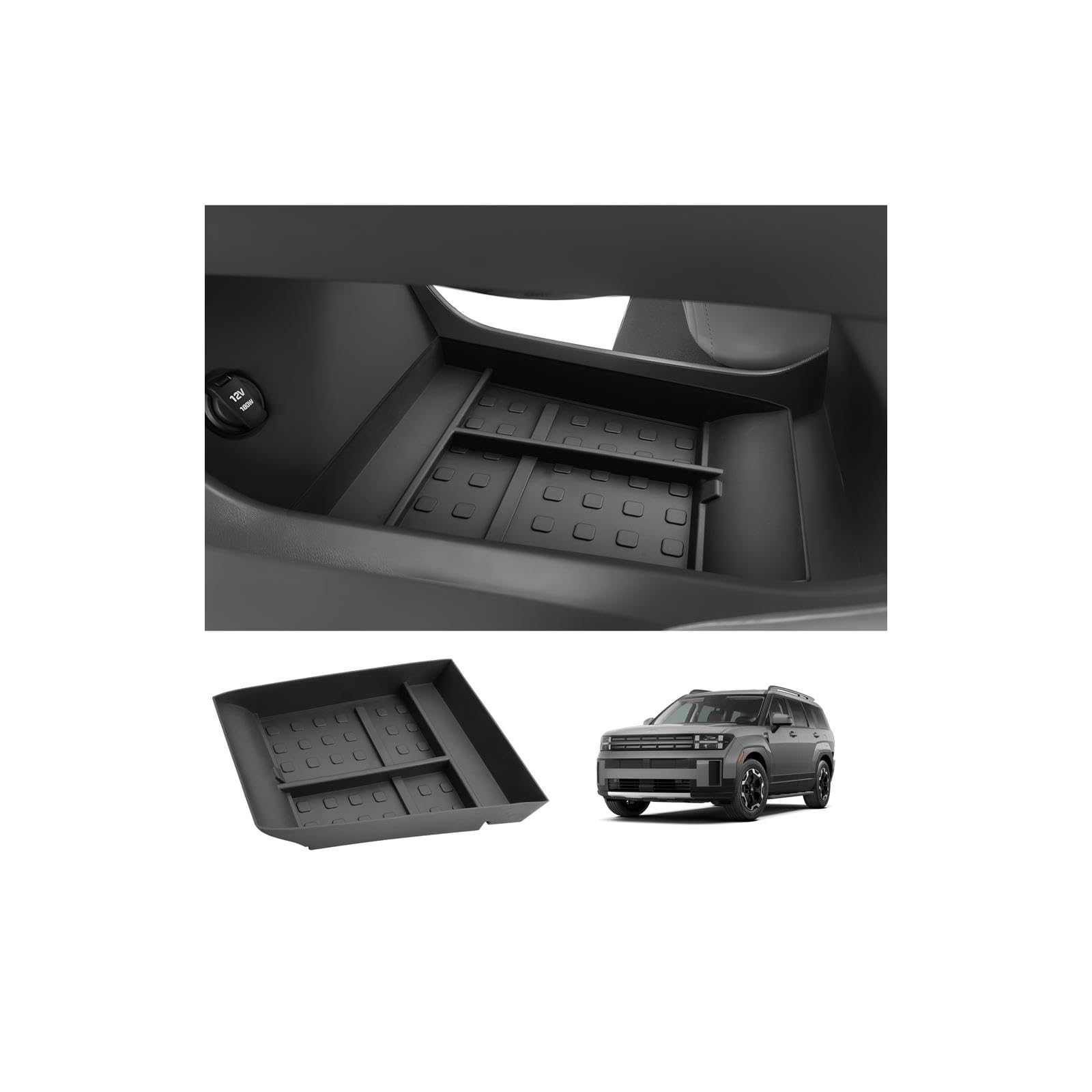 Easy to clean — The Santa Fe accessories 2026,2025 Santa Fe accessories,car armrest glove box 2026 Santa Fe accessories contains a rubber tray bottom liner, which can be placed when picking up keys or other items to reduce collision noise. Santa Fe glove box organizer can also be easily taken out and wiped with a wet wipe for easier cleaning