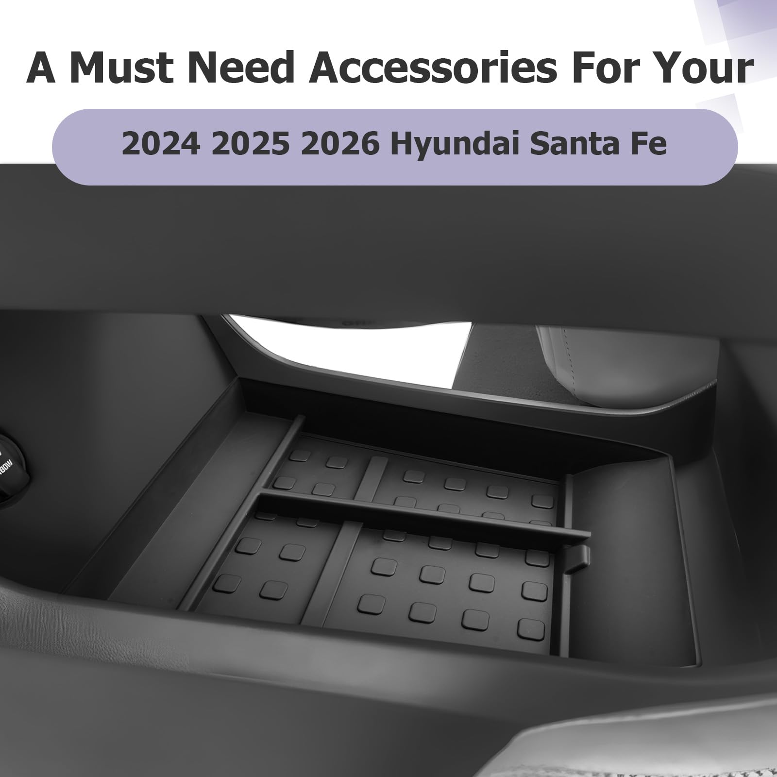 Match Perfectly — The Santa Fe center console organizer has a specially customized size, which is very suitable for 2024 2025 2026 Hyundai Santa Fe SE/SEL/XRT/Limited/Calligraphy trim interior accessories, absolute necessities of automobiles and fashion items. 2025 2026 Santa Fe accessories with multiple compartments to meet your needs for storing various items