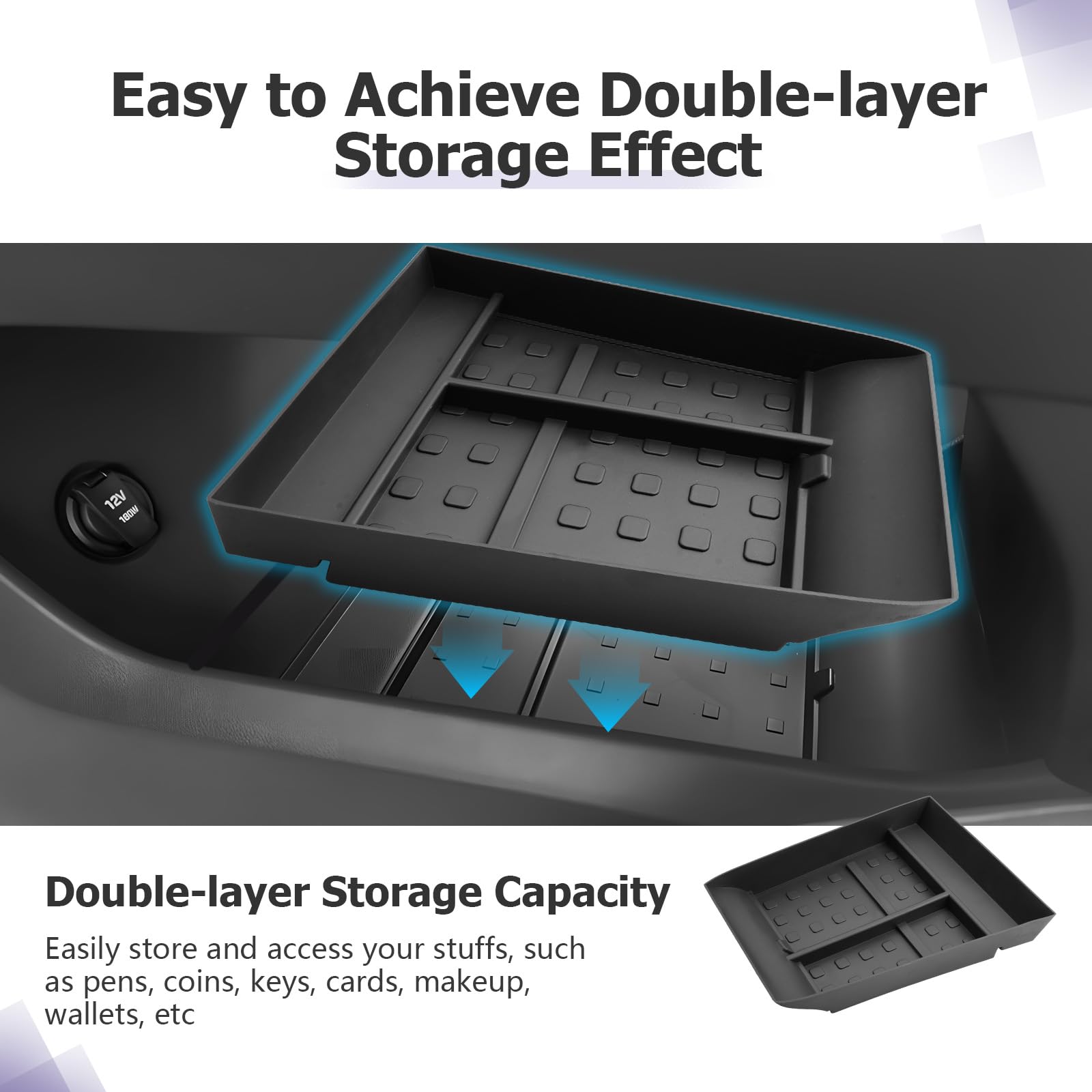 Maximize Your Space — organizer for Santa Fe console,2025 Santa Fe accessories, Santa Fe glove box organizer increase the available space of the center console, you can easily store and access your items, such as pens, coins, keys, wallets, etc., and quickly access items without digging holes. Orderly storage helps your 2026 Santa Fe center console get rid of the messy storage environment