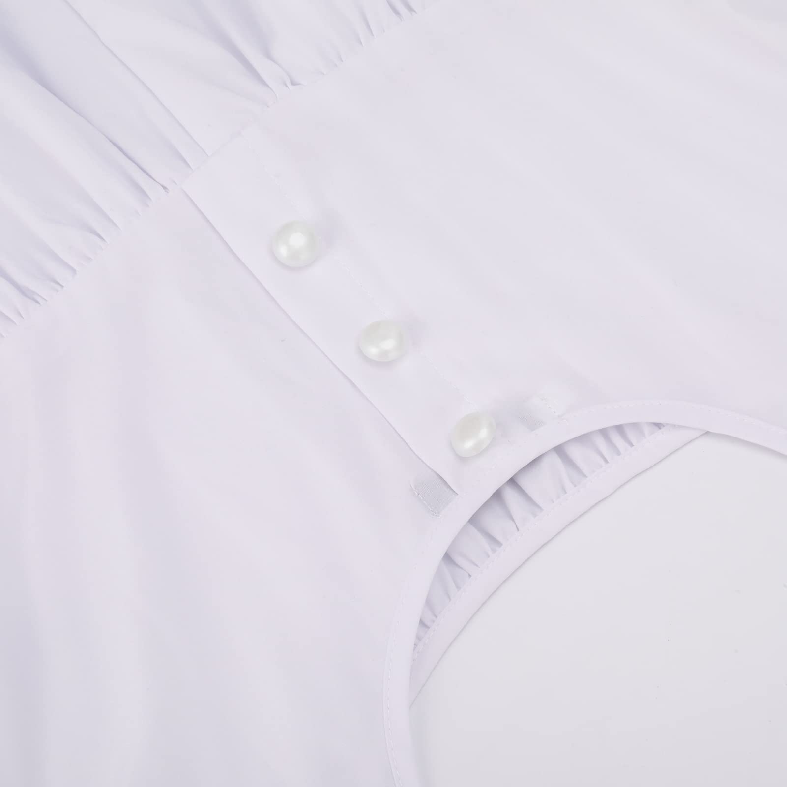 Features: Square neck, U-Back with functional buttons, Short puff sleeves, Empire waist with removable sash